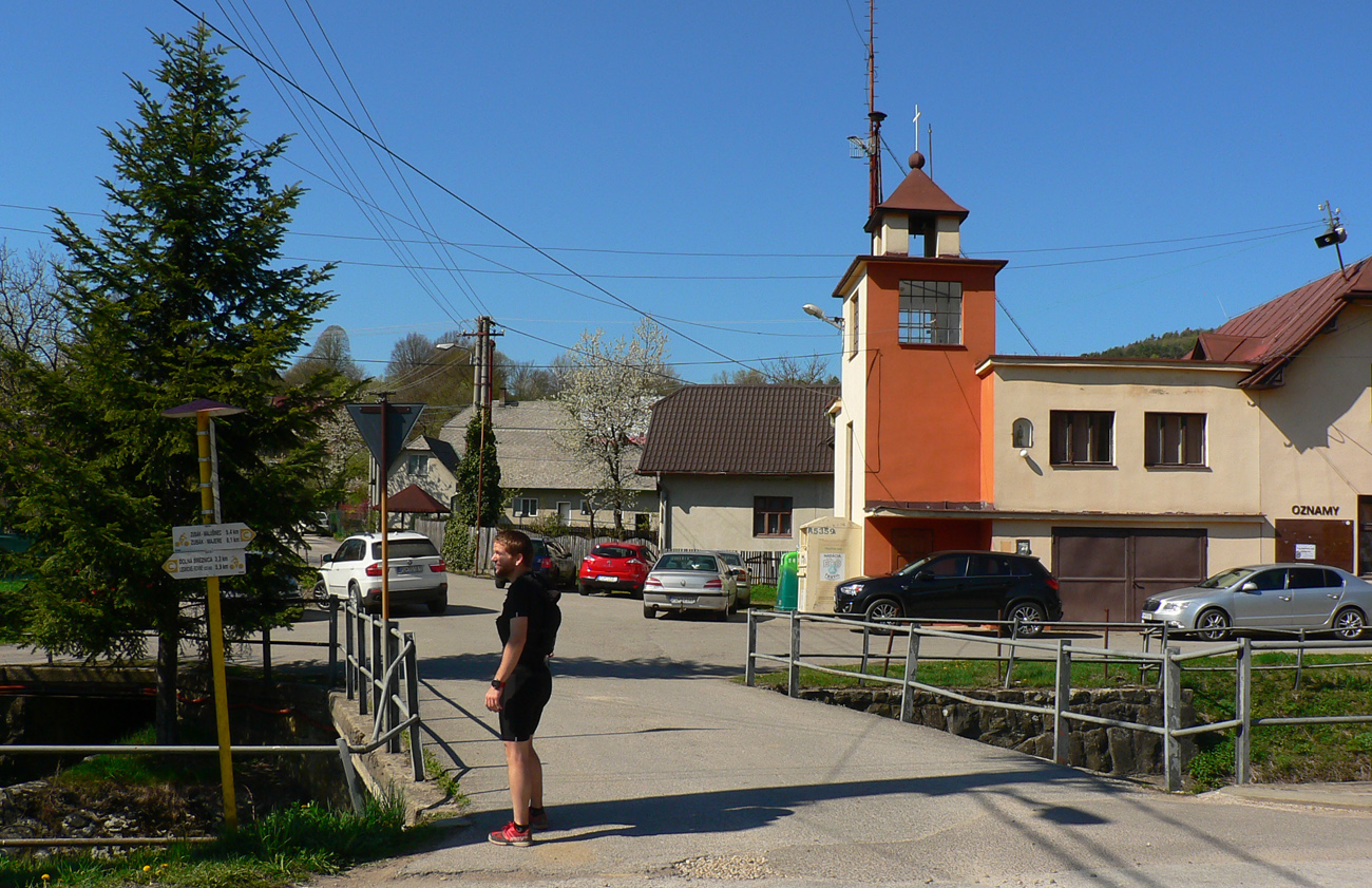 Stúpanie z osady Keblie viedlo už do Bielych Karpát - nič moc, po rozbitej zvážnici pomedzi rúbane, ale to už nie je kritika. Aj drevo treba. Potom do Hornej Breznice už je to krajší zbeh, len sme sa trochu pomotali pomedzi lúky a remízky. Ale kostolná veža vpredu nepustila zablúdiť a na horizonte už sa črtali Vršatské bralá.