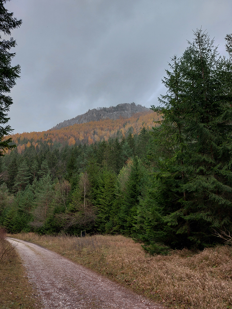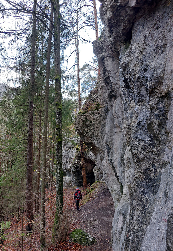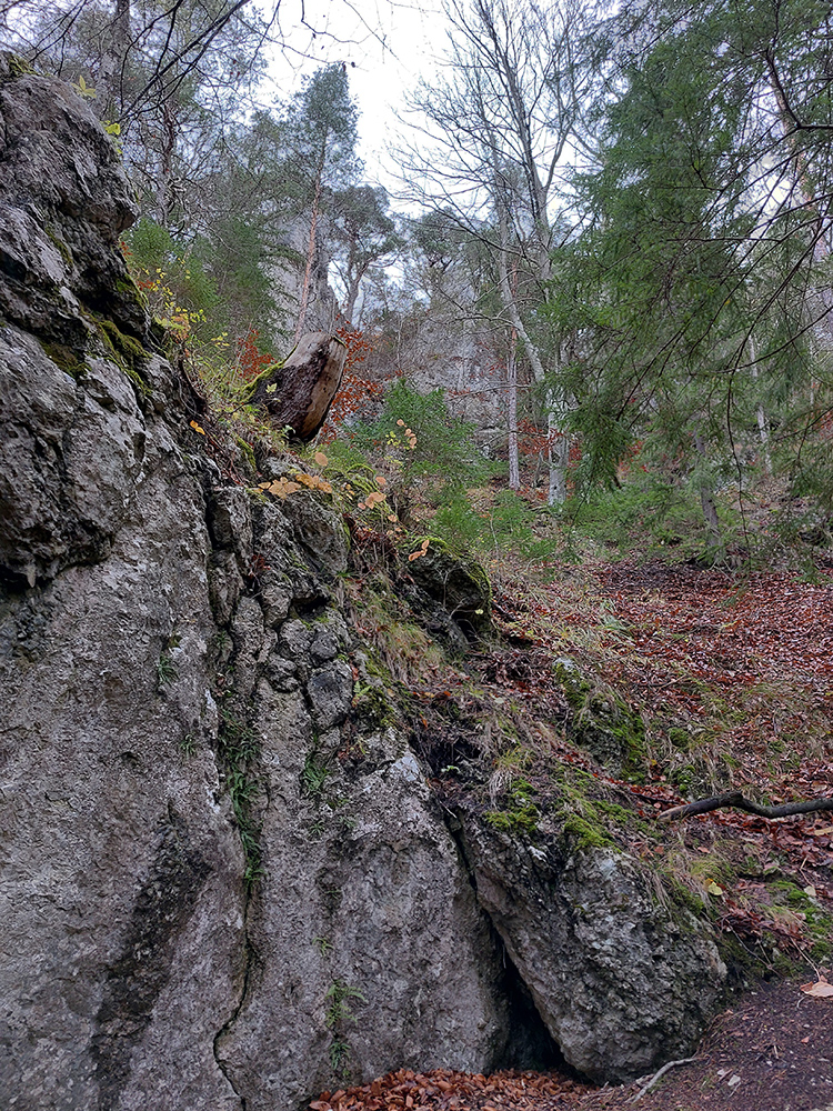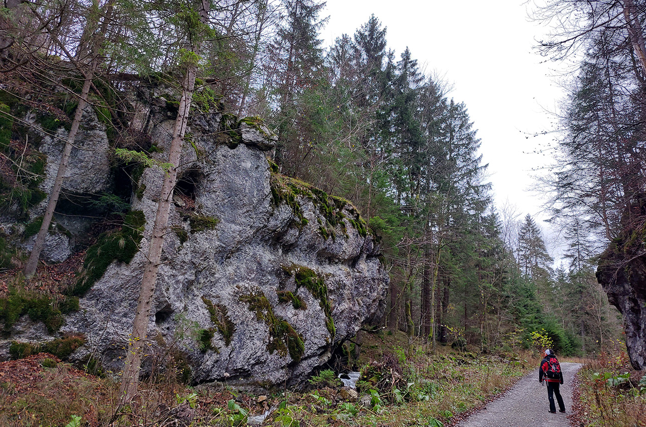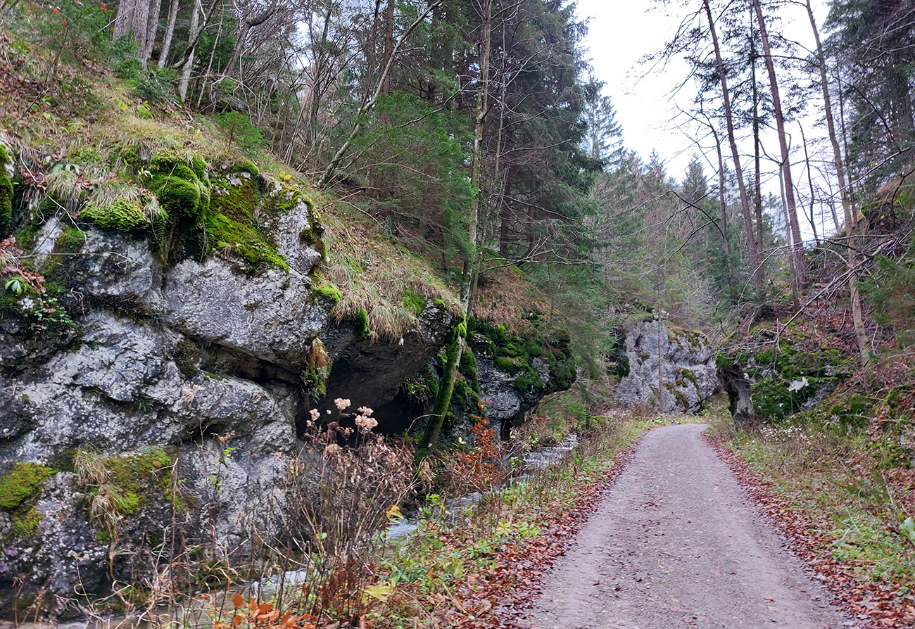 Spevnená šotolinová cesta vedie zhruba šesť kilometrov od ústia po smerovník „Spoj Rakytovských dolín“, takže pod nohy netreba veľmi pozerať. Dolinou sa plazí v pohodovom, miernom sklone aj zelená značka a cyklotrasa. Zelená pokračuje ďalej cez Smrekov na Kráľovu studňu, cyklotrasa pri smerovníku končí. To ale nie sú jediné možnosti. Od smerovníka sa dá ešte „vybehnúť“ po žltej značke pod Drienok, podobná žltá vedie z nižšieho bodu doliny do opačného svahu (ale rovnako strmého) pod Ostrú. Na mapách sú tie žlté také krátke spojky, v realite poriadne výživné strminy. Ale najmä tú nižšiu odbočku sa oplatí pozrieť, aspoň po skalný prah v jej prvej tretine, lebo cestou k nemu sú v lese, aj priamo popri chodníku, porozhadzované parádne skaly až bralá. A tam dole nie je sklon veľký (to ani na druhej žltej odbočke).