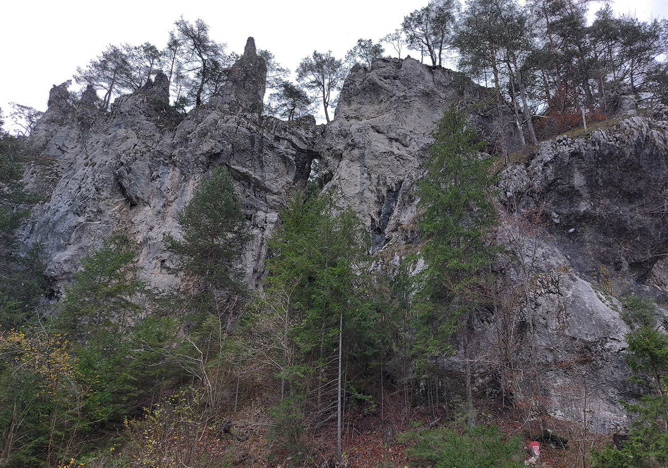My sme ešte ako bonus obzreli aj lezecké steny pod Kaškovou vežou – pekné, suché vápencové skalky, otočené na juh. Inak jedna z tunajších ciest má meno Vetroplach (5+). Celý sektor je ukrytý v lese nad pravým brehom potoka, v dolnej časti doliny – na chodník k nemu vedú dva mostíky cez potok. Pred mostíkmi stoja teraz aj tabule, odkazujúce na natáčanie filmov o SNP a o Jánošíkovi v týchto miestach. Nedá sa nevšimnúť si ich.