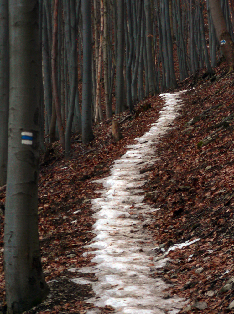 Podrobný „návod na použitie“ podala Jaraba už pred časom (link je tu nižšie), tak len toľko, že miestny odbor KST si zjavne tento kopček piple a stará sa. Lebo chodníky sú označkované nadmieru, serpentínky dobre že nie vyzametané a na vrchole už nie skladacie ležadlá, ale seriózna lavička ako v parku. Len ten prístup z dediny cez apokalyptickú krajinu kameňolomu, aj s bordelom v holých kríkoch, ktorý ako keby k tomu patril, a cez obrovské rúbanisko... Predsa len, v zime je to tu šedivšie, ako počas iných ročných období. Ale modrá obloha a slnko na nej, bezvetrie a pokoj to vyrovnávajú. Komu by bolo málo motať sa tu necelé tri hodiny, môže vyraziť napríklad ešte hore Turskou dolinou, možno až na Minčol. Skoro celú cestu je v podstate vidieť z vrcholu Čipčia. O tej ale nabudúce.