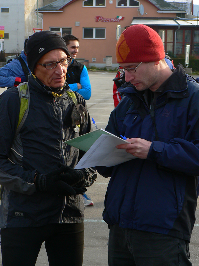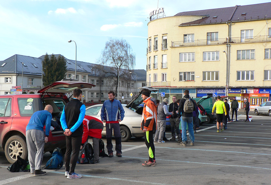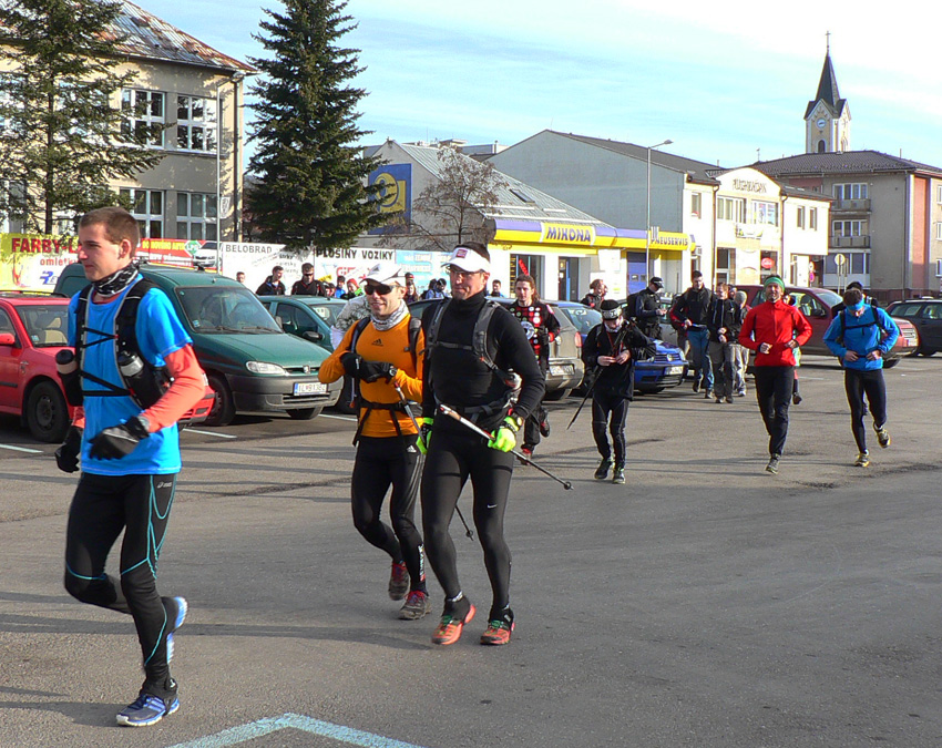 Pohľad na štartové parkovisko neveštil nič dobré - toto nebude prechádzková akcia! Skoro žiadni turisti, skoro samí bežci! Začína to zostra! No veď uvidíme či uvisíme aspoň na konci pelotónu, ako hovoria cyklisti. Pretože generálny riaditeľ tohto projektu, prezident organizačného výboru a šéf davu organizátorov nechal svoj nástroj moci (megafón) doma, štart prebehol asi takouto formou: "Koľko je hodín?" "No už štvrť!" "Tak môžeme ísť?" "Hej môžete..." :-)