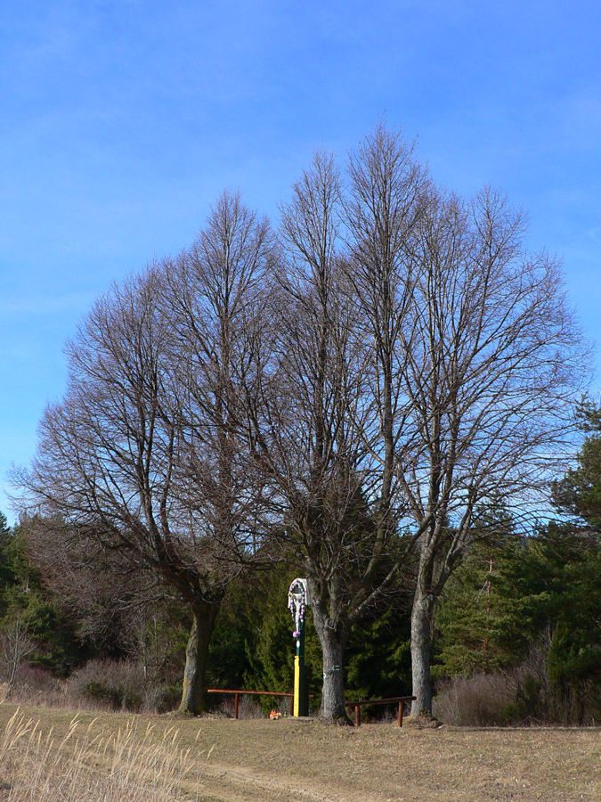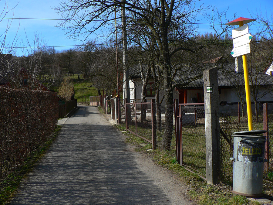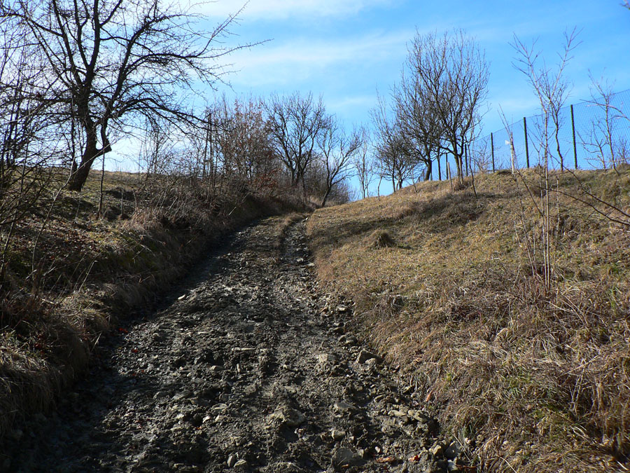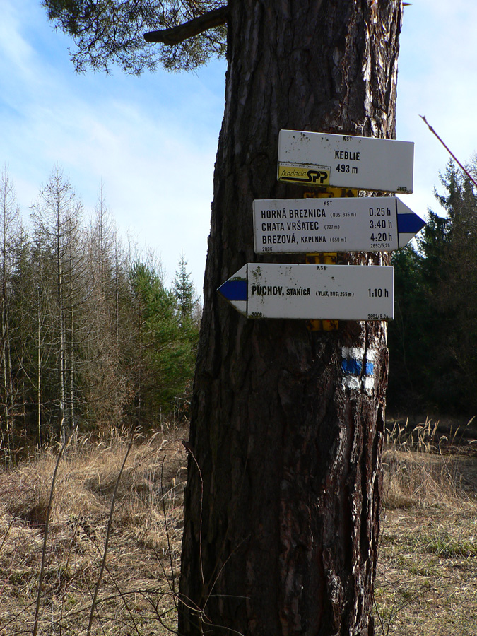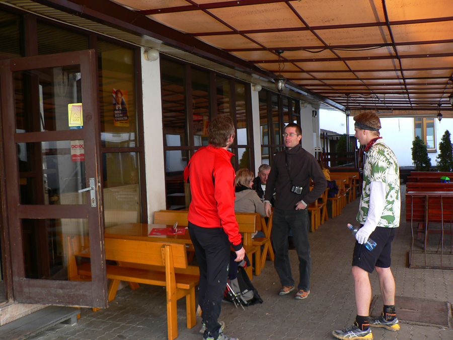 Zbehnutie do Mestečka bolo riadne strmé, ale väčšinou suché, niektorí sa tešili, že si odskočia do krčmy. Iní: rýchlo fotka smerovníka za potokom v Záriečí a daváj do kopca na druhej strane doliny! Dole lúky, vyššie les a samozrejme zvážnica, po vyplazení na trávnatý hrebeň už v ďalšej doline svietili domčeky Zubáka a scenár sa opakoval. Pri zbiehaní do dediny mohol každý pri pohľade na náprotivný svah tipovať, ktorou z ciest sa bude štverať hore. A to náprotivné štveranie bolo asi mnohým dosť protivné, však? Hneď nad dedinou sa naskytla možnosť impregnácie: blato konzervuje! Potom nekonečný stupák. Našťastie hore kríž, pod krížom lavička a v diaľke zasnežené obzory, no neposeď si, unavený človek :-) Ale nie dlho, bo nohy stuhnú a treba do Lednice zbehnúť. A z Lednice cez ďalší kopec do Hornej Breznice a stade už len posledné stúpanie na Keblie a dole do cieľa do Púchova. Ako to jednoducho vyzerá, že? Ale keď sa človek na začiatku hecne a v polovici mu dôjde... No, prežili hádam všetci :-)