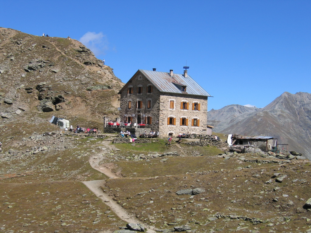 Od chaty prejdete vpravo popri jazere smerom k moréne ľadovca po vychodenom neznačkovanom chodníčku až na vysoký násyp morény. Po ňom až k úpätiu Ortlera. Tu vpravo slabo viditeľným chodníčkom strmo hore, až sa dostanete na široký suťový svah. Serpentínami po chodníčku hore. V závere skalný prah (cca 2+), po prelezení sa dostanete na ďalší sutinový svah. Na jeho konci začína lezenie cca 2+ a neskôr hrebienok cca 3. Stále sa držíte vľavo od výrazného hrebeňa, až sa naň dostanete v mieste, kde začína ľadovec.