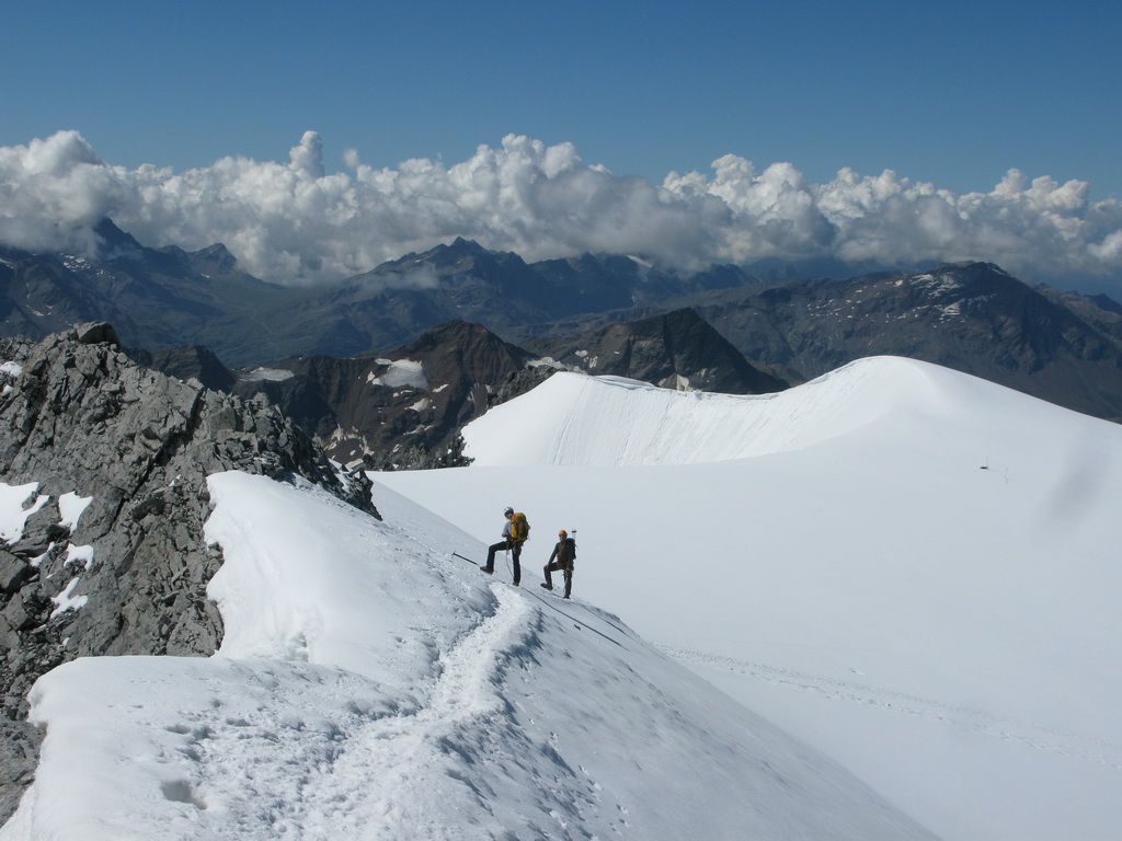 Tip: V prípade prudkého zhoršenia počasia pri výstupe na vrchol je na zváženie pokúsiť sa zostúpiť naspäť dole po Hintergrate. Je to určite bezpečnejšie ako sa zapráskať dakde na ľadovci. Normálka nie je zase až taká normálna, ako by sa mohlo zdať.