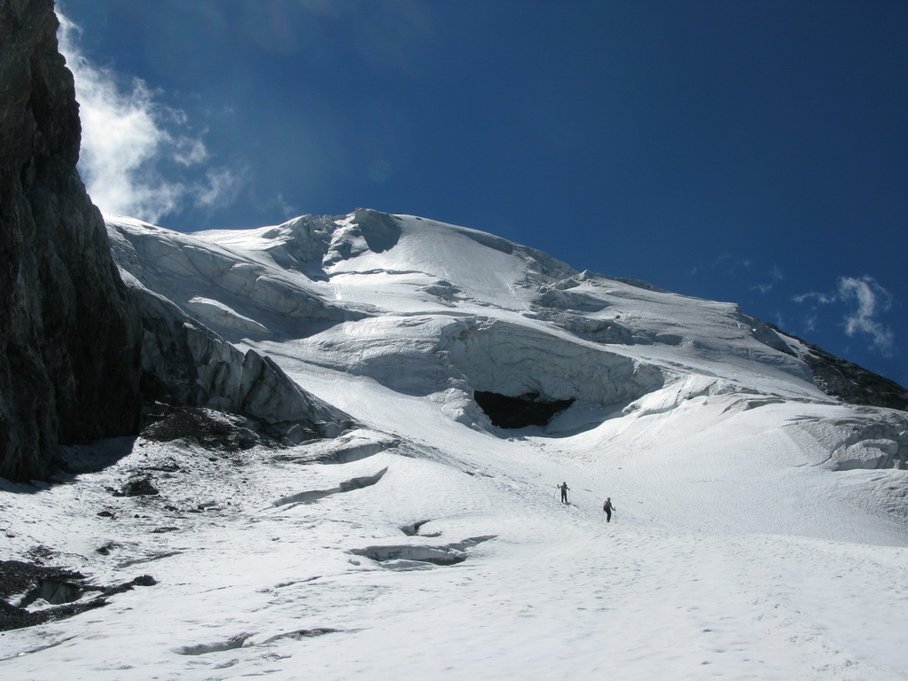 Počas mojich dvoch výletov na Ortler som sa našťastie s týmto problémom nestretol. Po výstupe Hintergratom som pri zostupe po ľadovci dokonca využil ponuku dvoch Rakúšanov a cez trhliny som prešiel spolu s nimi, naviazaný na lane. Takže som nemusel vôbec riskovať.