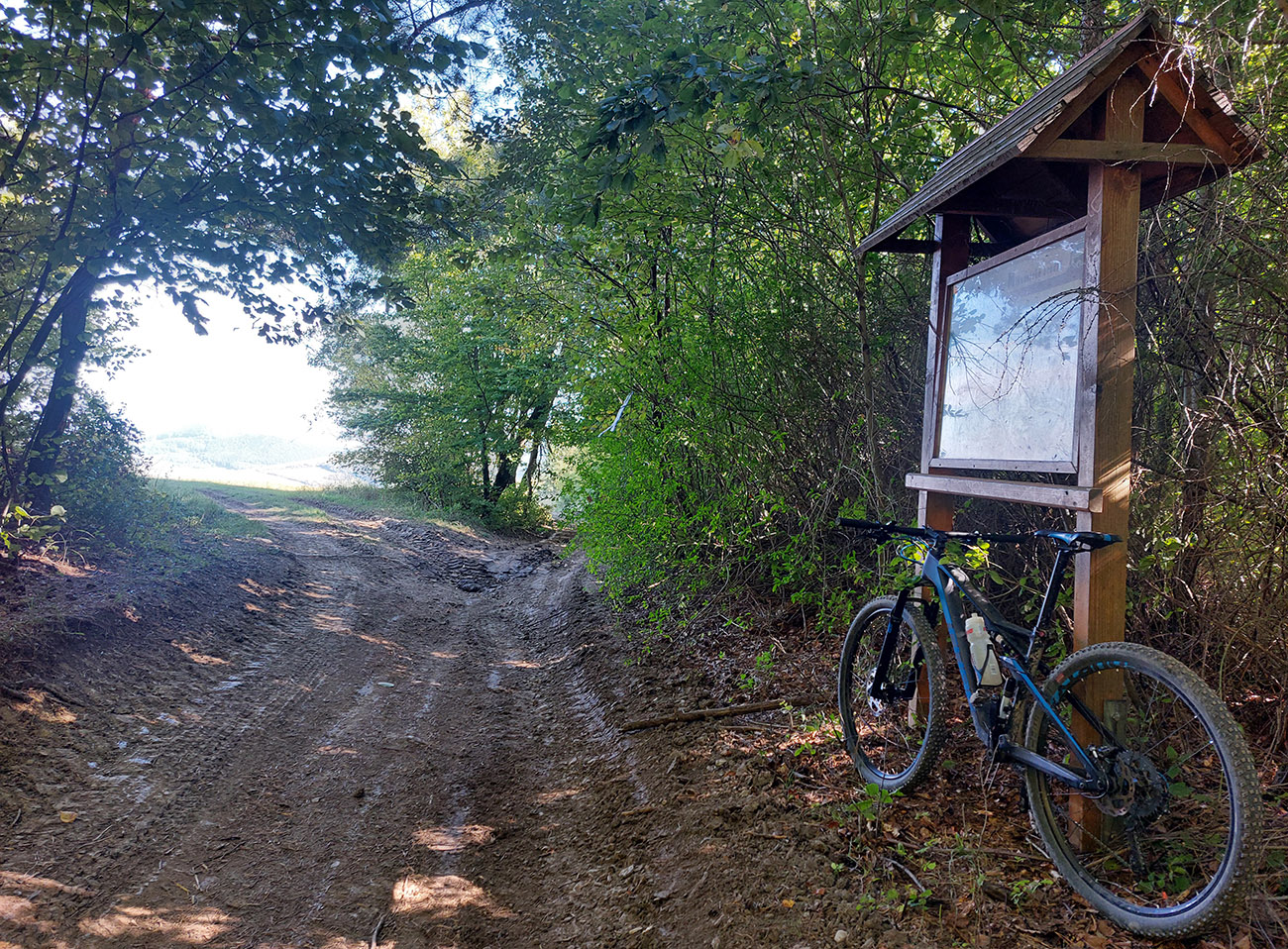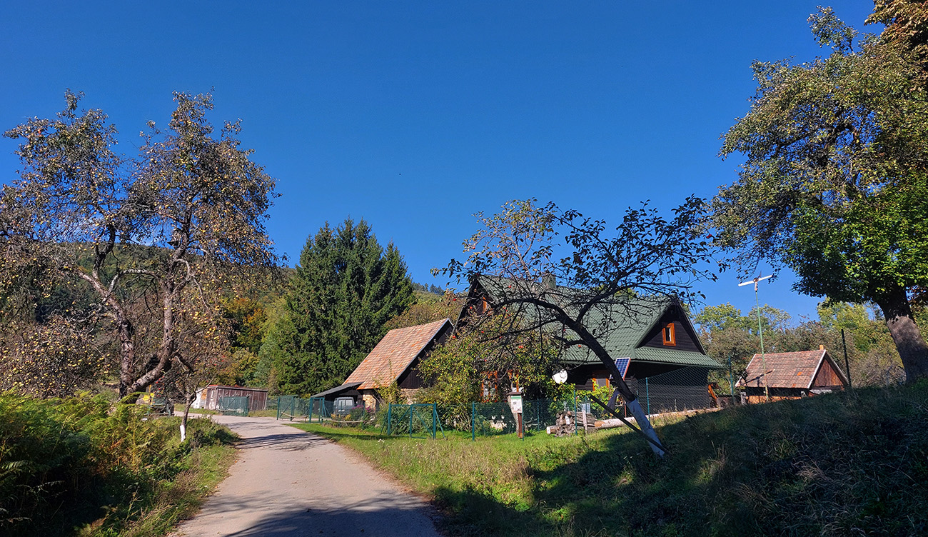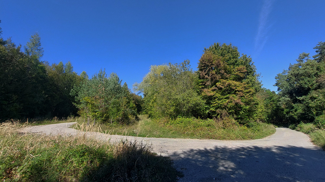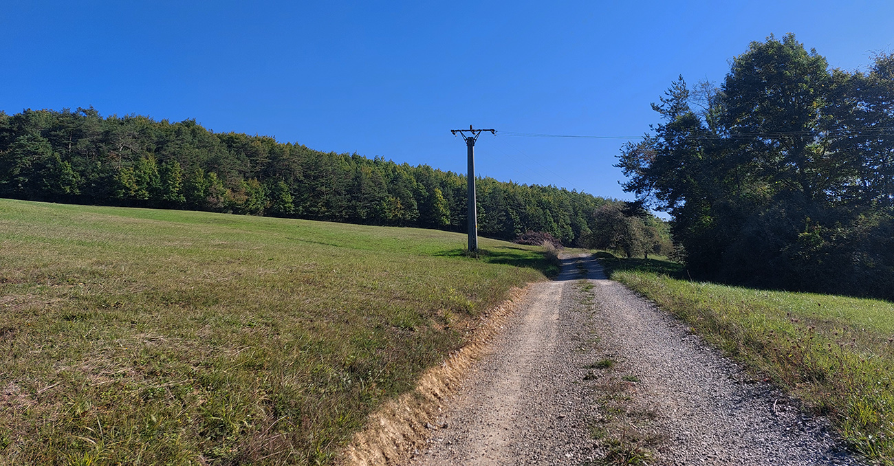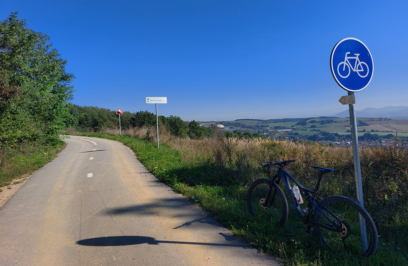 V prvej časti, až niekam za Horné Srnie, to bolo časté striedanie výhľadových lúk a pasienkov s hlinenými cestami krížom cez listnaté lesy. Zopár menej pohodlných, lebo strmých výšľapov, ale nie dlhých, zvládnuteľných. Inak pohodové sklony, takmer všade široké cesty, aj asfalt, kde by som ho možno nečakal. No a to sucho - po septembrových dažďoch až zarážajúce. Cestou dve rozhľadne a prejazd popod bralnatý Krasín nad Dolnou Súčou.