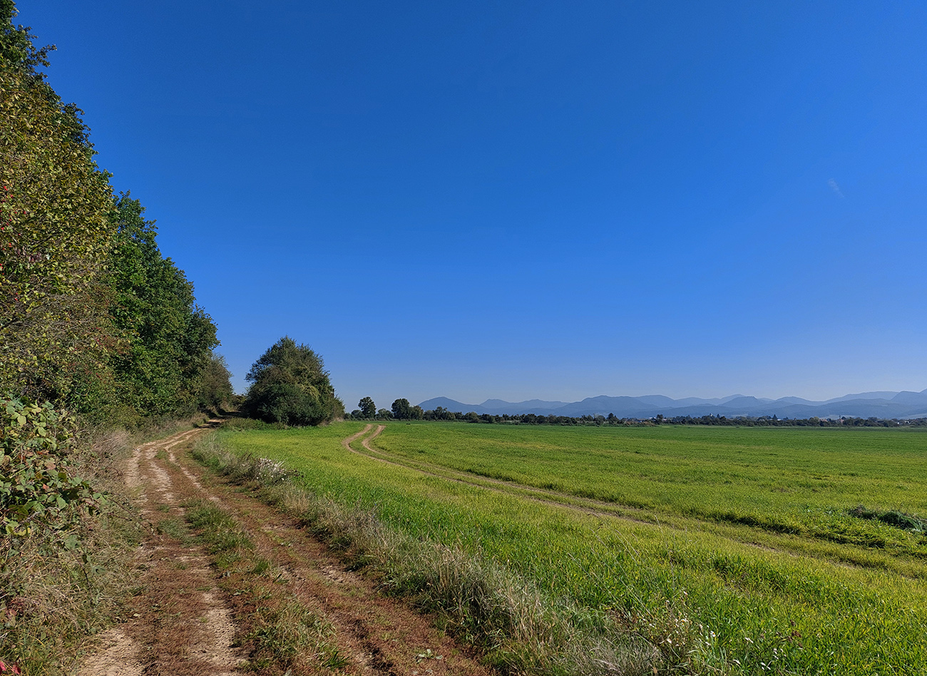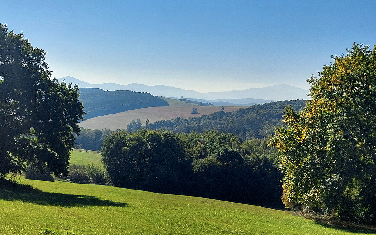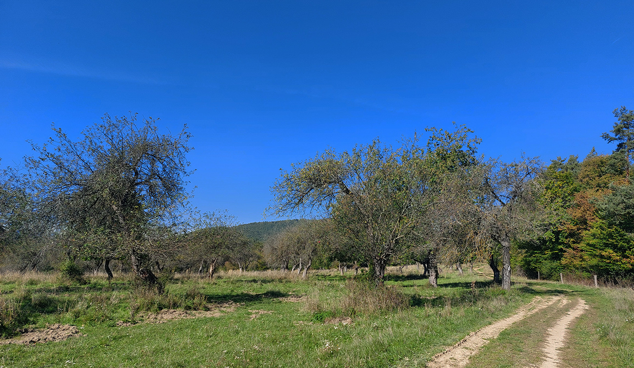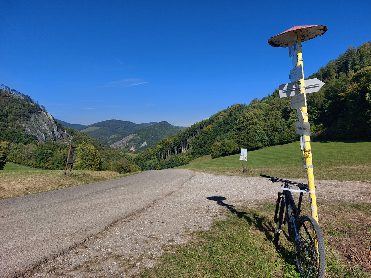 V prvej časti, až niekam za Horné Srnie, to bolo časté striedanie výhľadových lúk a pasienkov s hlinenými cestami krížom cez listnaté lesy. Zopár menej pohodlných, lebo strmých výšľapov, ale nie dlhých, zvládnuteľných. Inak pohodové sklony, takmer všade široké cesty, aj asfalt, kde by som ho možno nečakal. No a to sucho - po septembrových dažďoch až zarážajúce. Cestou dve rozhľadne a prejazd popod bralnatý Krasín nad Dolnou Súčou.