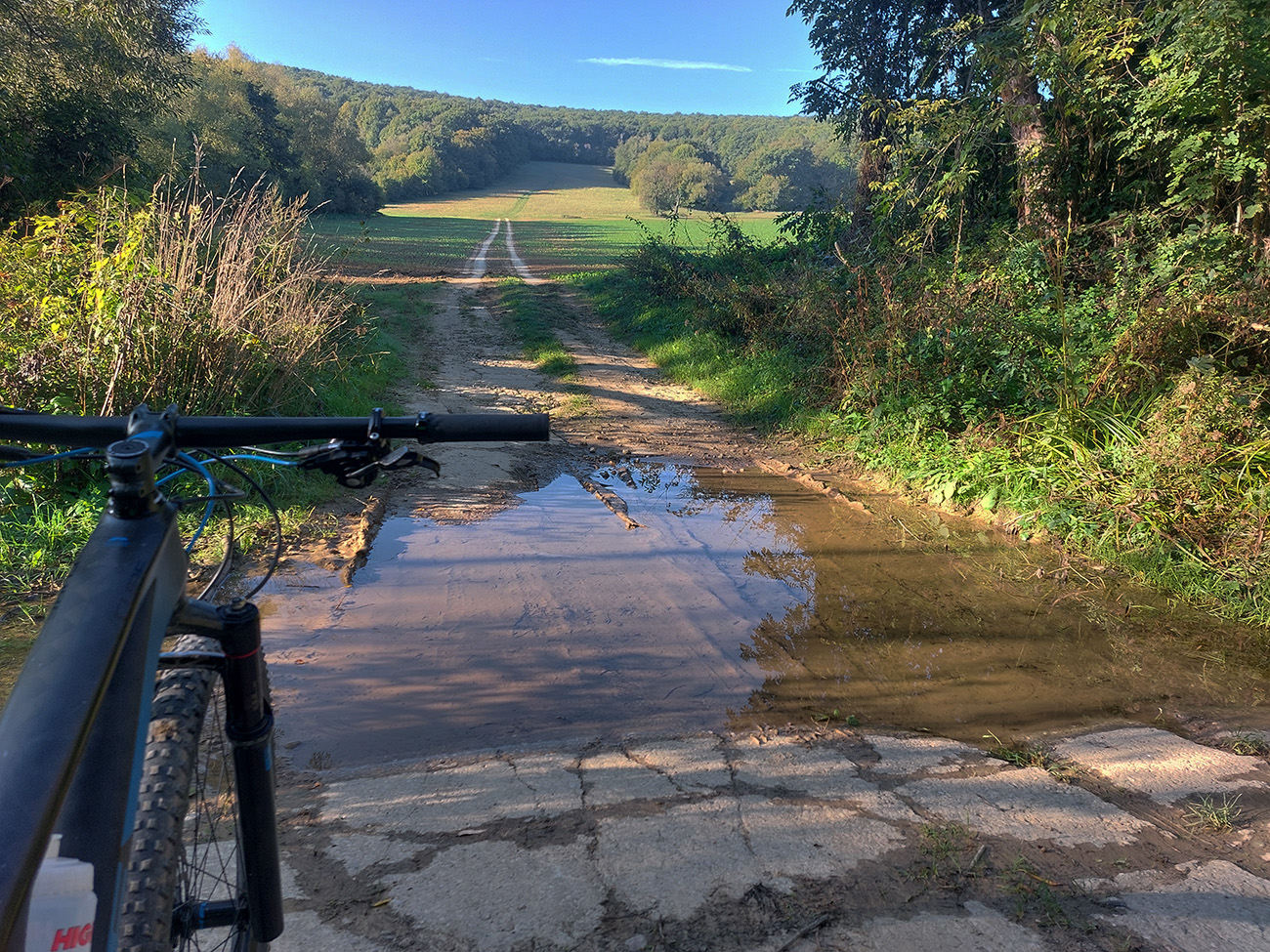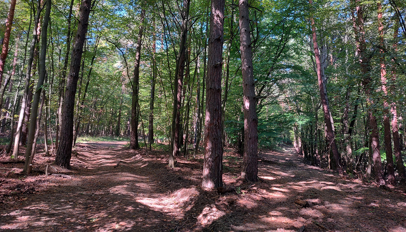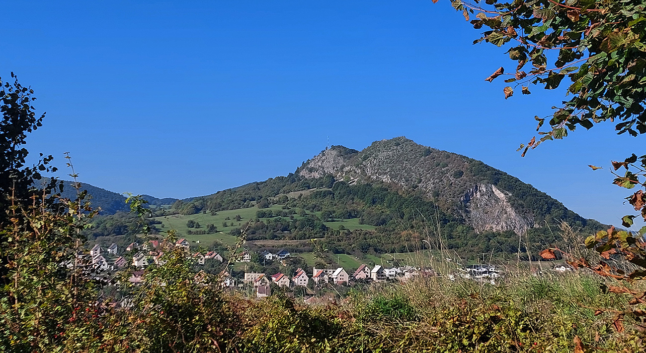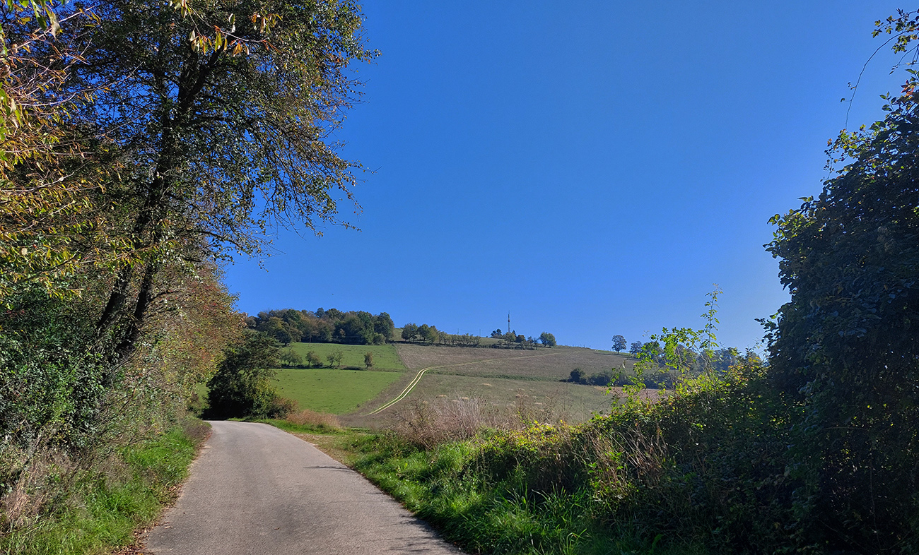 V prvej časti, až niekam za Horné Srnie, to bolo časté striedanie výhľadových lúk a pasienkov s hlinenými cestami krížom cez listnaté lesy. Zopár menej pohodlných, lebo strmých výšľapov, ale nie dlhých, zvládnuteľných. Inak pohodové sklony, takmer všade široké cesty, aj asfalt, kde by som ho možno nečakal. No a to sucho - po septembrových dažďoch až zarážajúce. Cestou dve rozhľadne a prejazd popod bralnatý Krasín nad Dolnou Súčou.