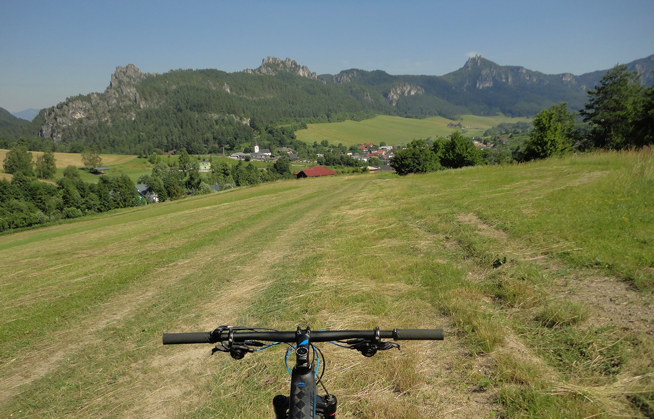Takže Vrchteplá po druhý raz, a teraz už poslušne po žltej cykloznačke do Súľova, priamo do city. Klasika: výstup po lúkach, za horizontom preklopenie do klesania lesom. Miesta mi boli povedomé aj napriek mojim nepočetným účastiam na maratóne. A dobrý smer som si vybral: výstup kratší, zjazd dlhší a strmší, navyše v dolnej polovici slnku otvorený, po lúkach. Vpredu panoráma bombastického, zubatého súľovského hrebeňa: