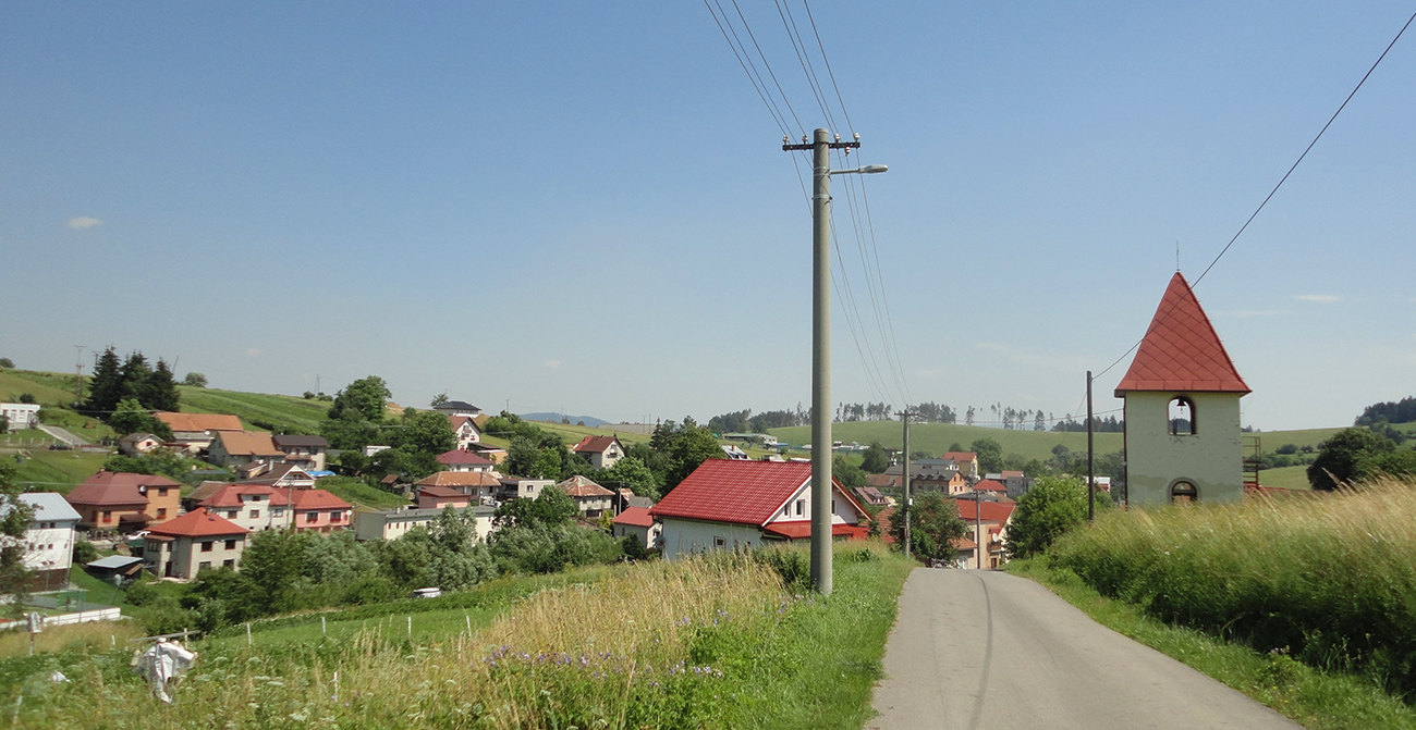 Cesta dolinou, už mimo vyšších stupňov ochrany, už sa tvárila „výrazne lesohospodársky“, ale dalo sa. Vyviedla ma na lúku s chatou a križovatkou: rovno by to bolo do Kňazovej Lehoty a na cyklotrasu smer Babkov, ale doľava ma zlákali krásne „strade bianche“ a nápis „studnička“ na pni. Studnička sa síce nekonala, ale do Babkova som trafil bez problémov, zhora popri zvoničke.