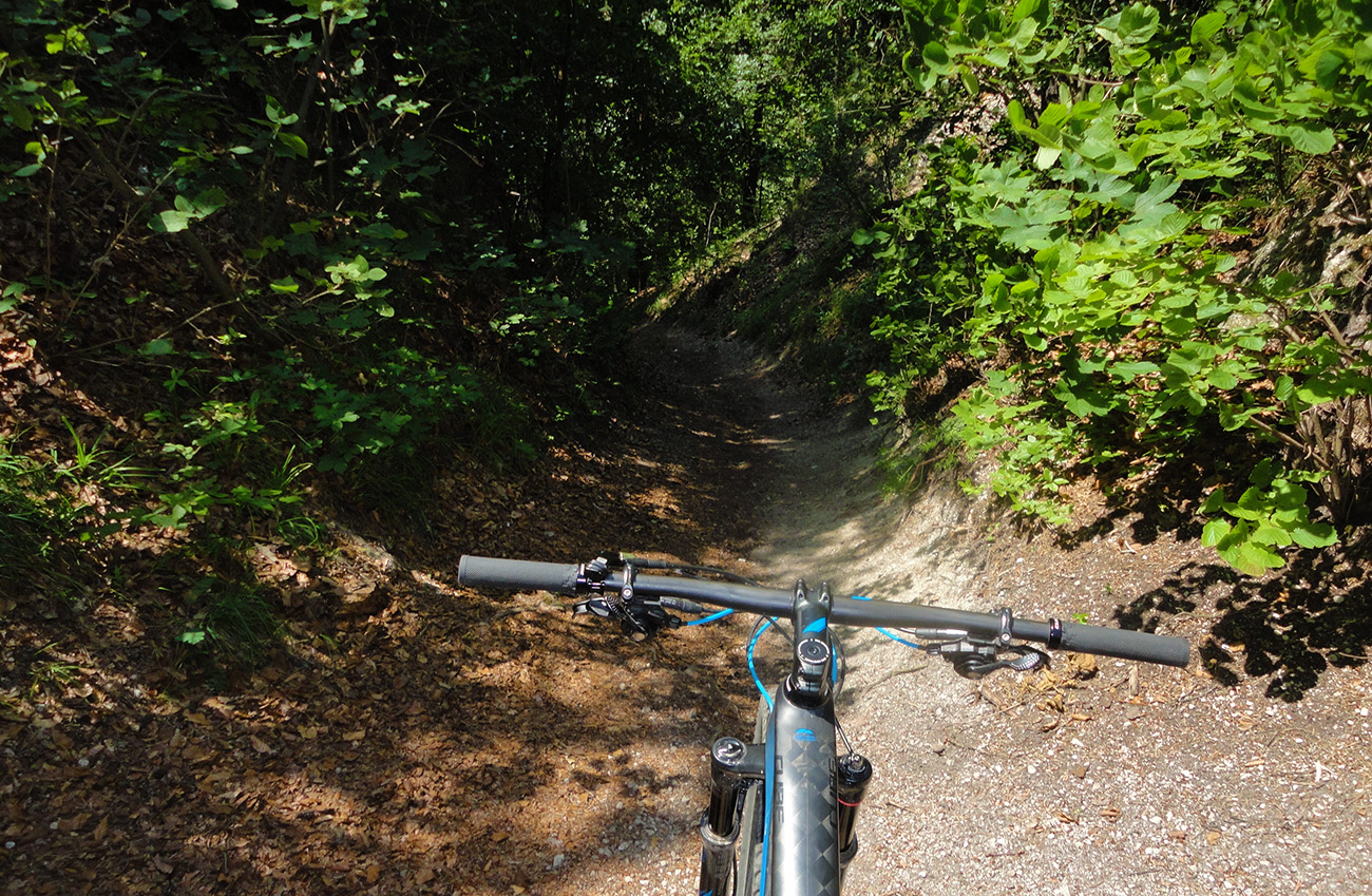 Lebo síce medzi Hričovským Podhradím a Ovčiarskom vedie prekráááááásny singel, ale dostať sa k nemu z dediny, to chce ozaj ľahké prevody. A netreba pritom zabudnúť, že ten najľahší ešte nebol zaradený :-))) No heeeej, tak vytrápil som sa hore lúkou - a už aj v poriadnom teple... Keď je hlava blbá, trpí celé telo, ale potooooom!!! No proste odmena, treba ísť vyskúšať. Asi lepšie v opačnom smere, je to viac z kopca a veľmi často aj dosť hravé. Niekde dokonca až moc, keď sa to zatočí a zúži.