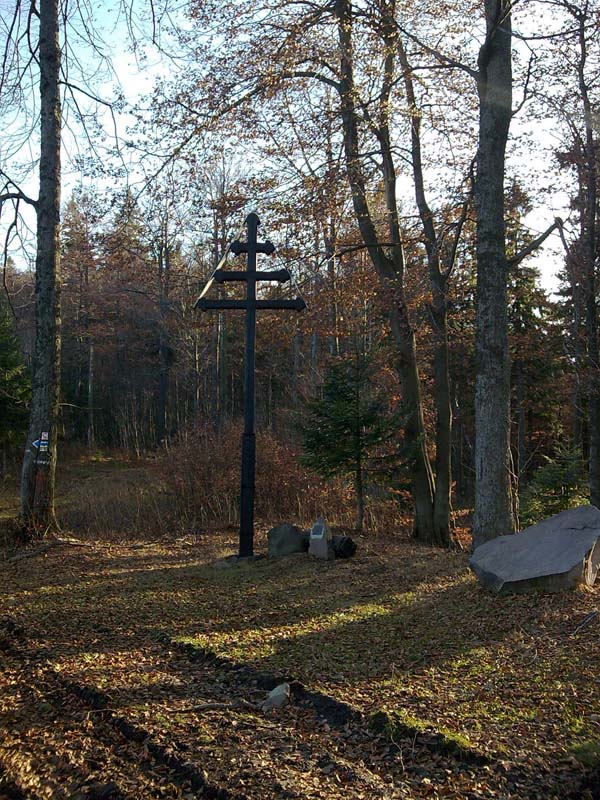 Približne 10 minút chôdze od Velestúru sa nachádza významná turistická križovatka - sedlo Tri kríže (1182m). Názov pochádza od dreveného trojkríža, ktorý je tu umiestnený. Na tomto mieste sa aj v minulosti stretávali tri dôležité cesty, po ktorých sa prepravovala vyťažená ruda. Zároveň sa tadiaľto vozila pošta a spracovaná meď z Bystrice do mincovní v Kremnici. Križovatka spájala dve banské mestá – Bystricu a Kremnicu, zároveň tu bola odbočka na tretiu cestu do Zvolena. Drevený trojkríž tu stojí od roku 1834. V roku 2003 bol pôvodný drevený kríž spálený vandalmi a tak sa Klub slovenských turistov toho istého roku podujal na jeho obnovu. Pri osádzaní nového trojkríža bolo potrebné odstrániť najprv zvyšky pôvodného. Pri týchto prácach sa našla v zemi priamo pod krížom zakopaná zakladajúca listina, ktorá je dnes uložená v Stredoslovenskom múzeu v Banskej Bystrici.