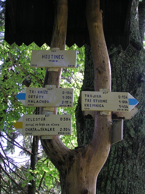 Keď sa vyberieme zo sedla Tri kríže po modrej značke, dostaneme sa asi za 20 minút k väčšej starobylej drevenici, dnes známej pod názvom chata Hostinec. Má úzky súvis s už spomínaným trojkrížom. V dávnej minulosti slúžila ako hostinec a boli tu ubytúvaní remeselníci a pocestní, ktorí sa stretávali na križovatke troch ciest. Pri Hostinci boli postavené stajne a okrem ubytovania sa tu prepriahali - vymieňali čerstvé kone do poštových vozov. Chata Hostinec je dnes majetkom KST a cez víkendy slúži ako bufet pre turistov.