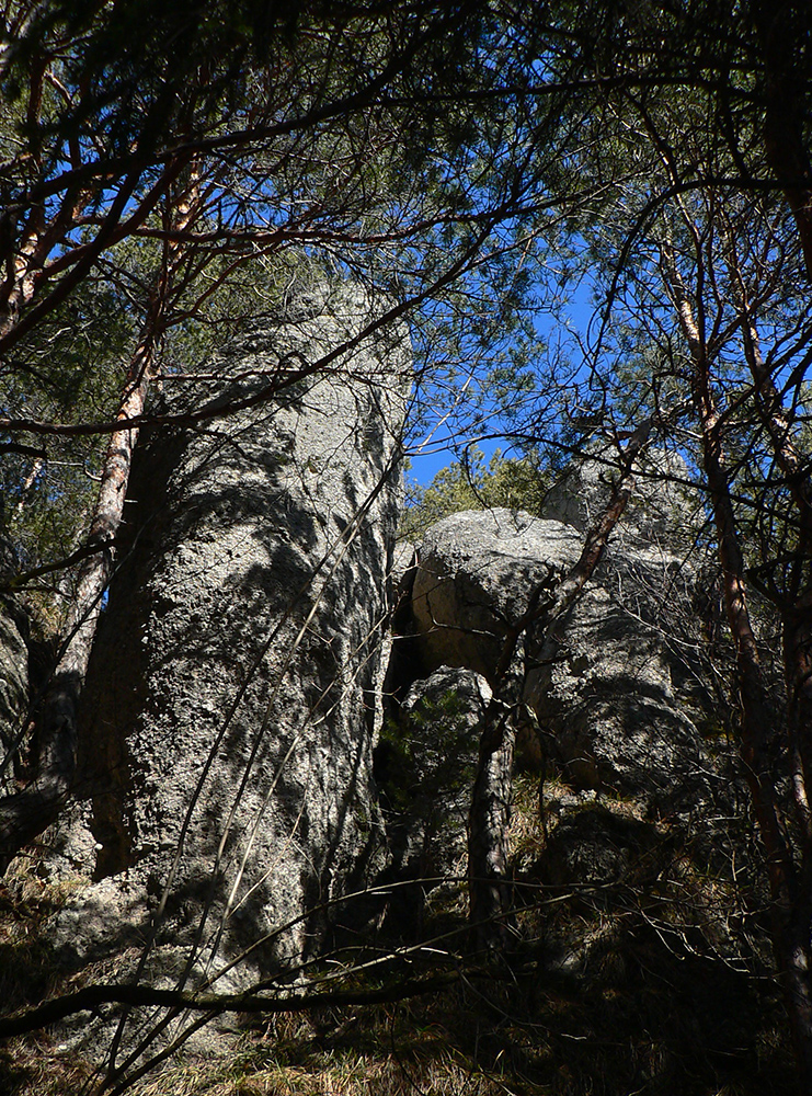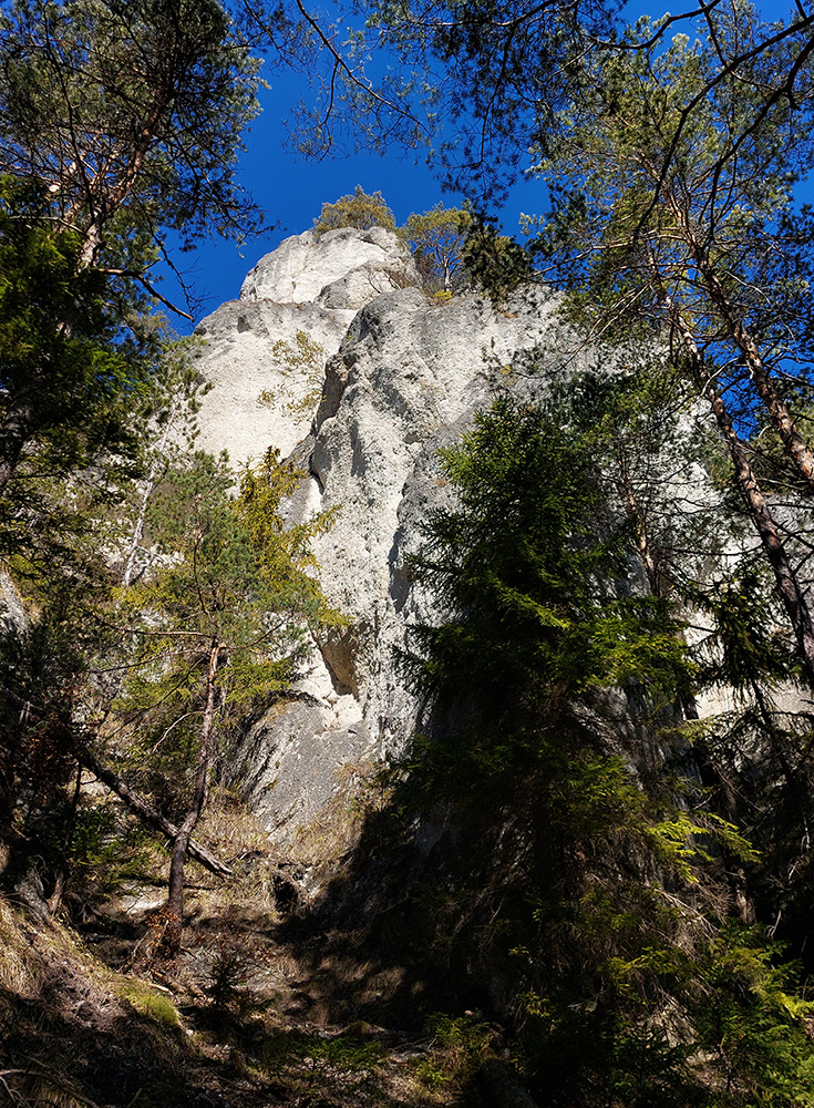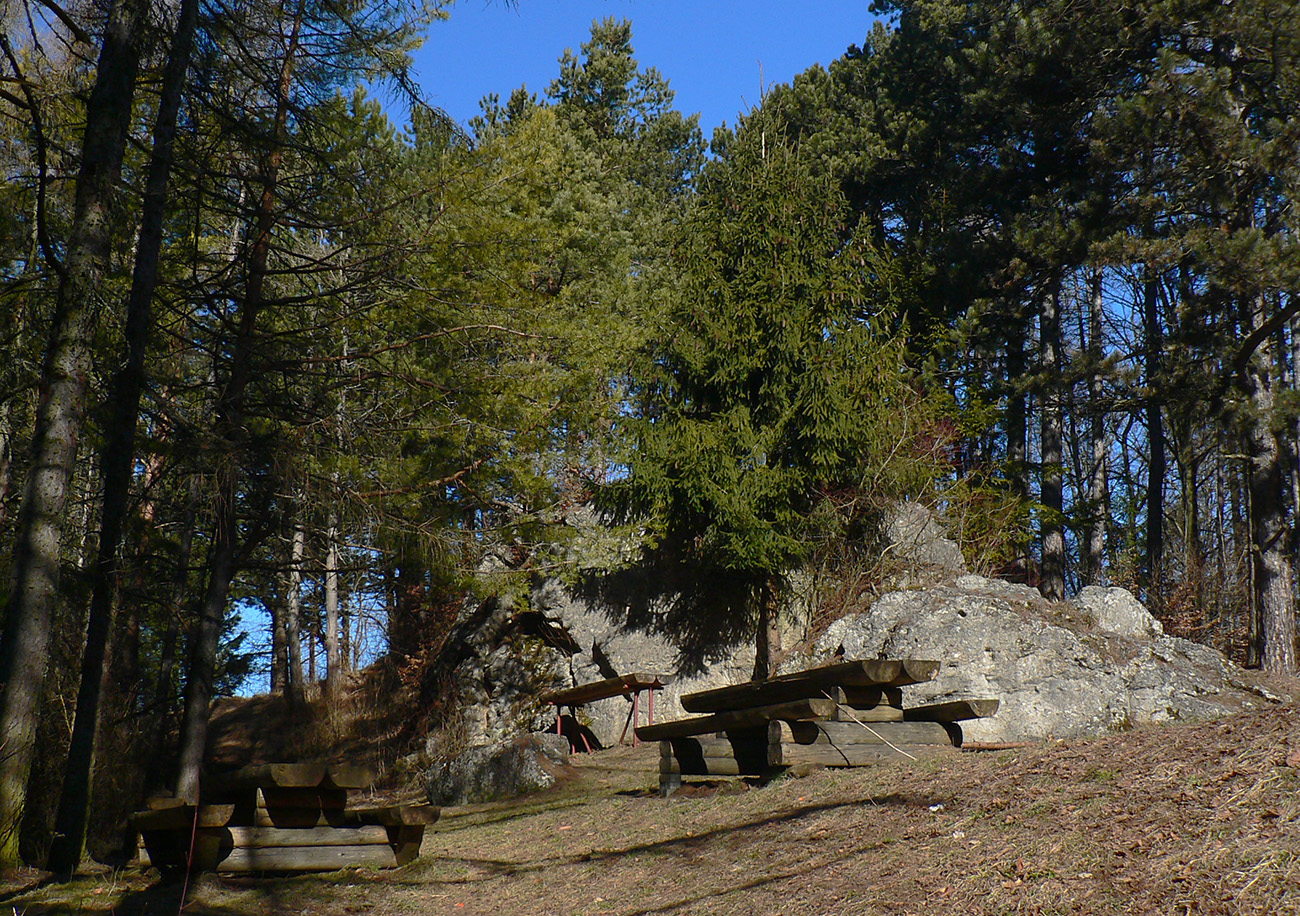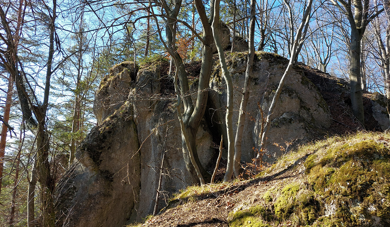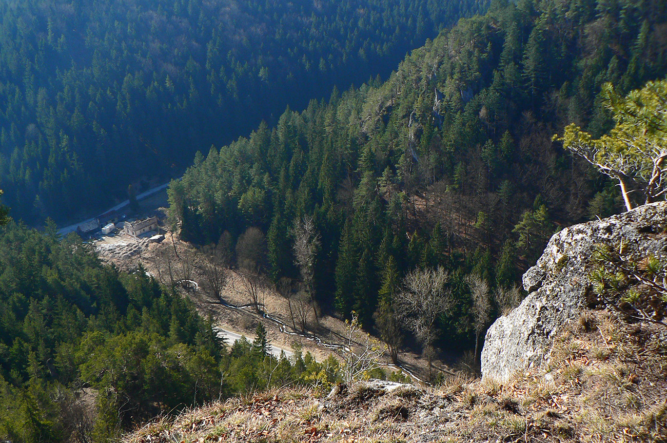 Keď začal chodník prudko padať k ceste do Babkova, našiel som si medzierku medzi bralami smerom dolu pod skaly a začal som sa vracať naspäť. Dalo by sa aj priamo zdola, z cesty, skaly končia až pri nej. Aj pod skalami sú chodníky – niekde výrazné, niekde len také zvieracie prte. Aj pár chlpatých domorodcov som vyrušil, aj trochu bordelu po lesných robotníkoch som vzal. S navigáciou žiadny problém, stačí si držať skalné steny po ľavej ruke a len sa motať hore a dole, ako sa komu chce.