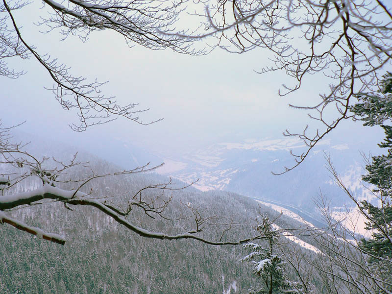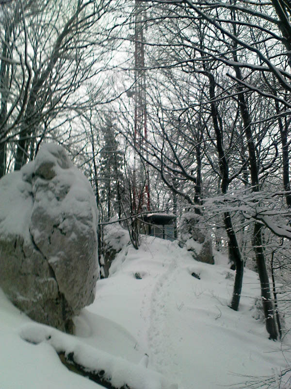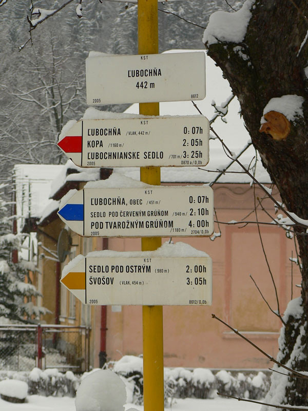 V lete je to celé v lese, vyhliadok je pomenej, aj to len v prvom stúpaní k vysielačom. Zimná zasnežená romantika ich ponúka viac pomedzi konáre holých stromov. Treba ale rátať so zdržaním – na niektorých miestach je ťažšia orientácia, lebo nevidno chodník. Nám sa aj značky niekedy skryli pod námrazou a tie ostatné bolo akosi lepšie vidieť v smere od Švošova, ako v smere od Ľubochne. Pod novým snehom boli hlavne na začiatku len konáre a lístie, čo v strmom svahu nebolo dvakrát príjemné.
