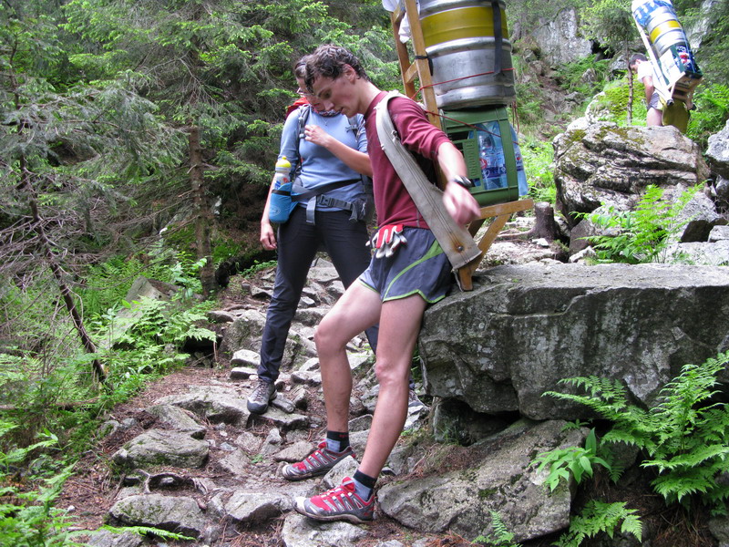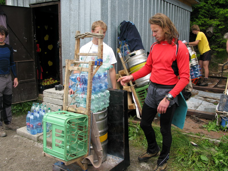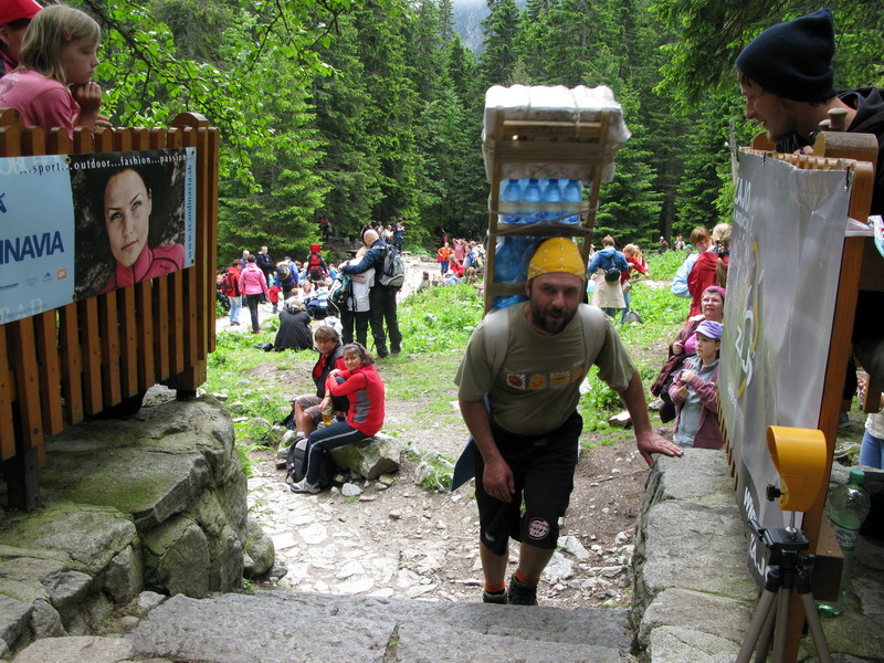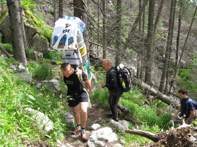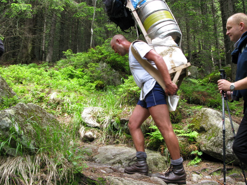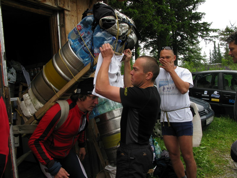 Tí najnepokojnejší si na Hrebienku nabalia krošnu, aby počty ľahké boli, tak rovných 100 kg a spolu s ostatným doprovodom sa prejdú na Zamkovského chatu. Tam už guláš, pivo a Sherpa Band čakať zvykne. Na dievčatá s veľkým batohom čaká 2x25 kíl a chlapci čo sa majú viac radi si dva krát 50 kg vyniesť môžu...