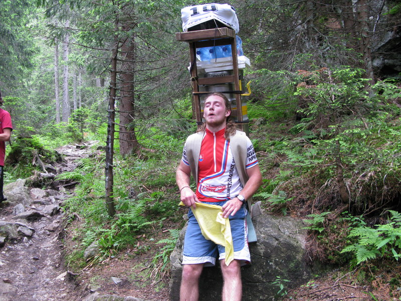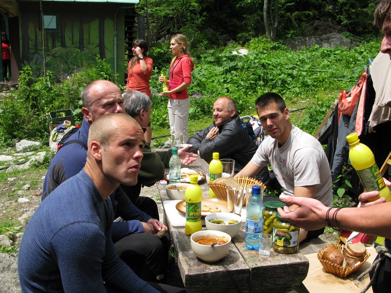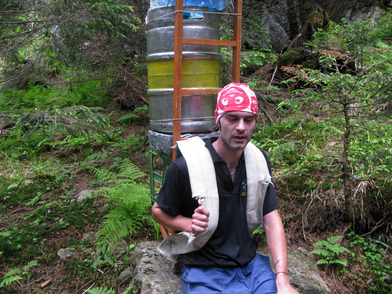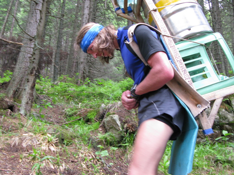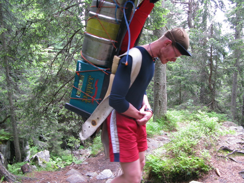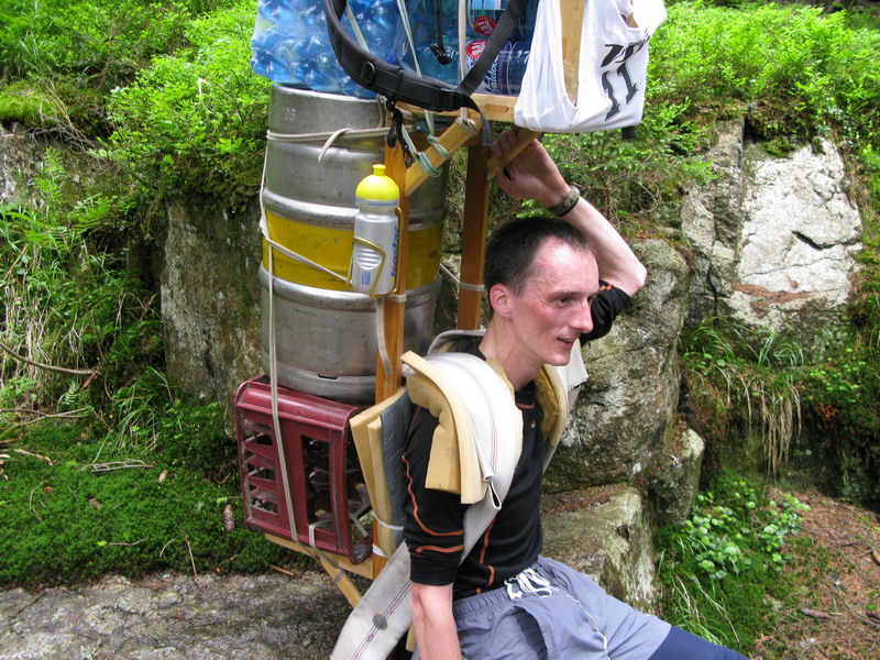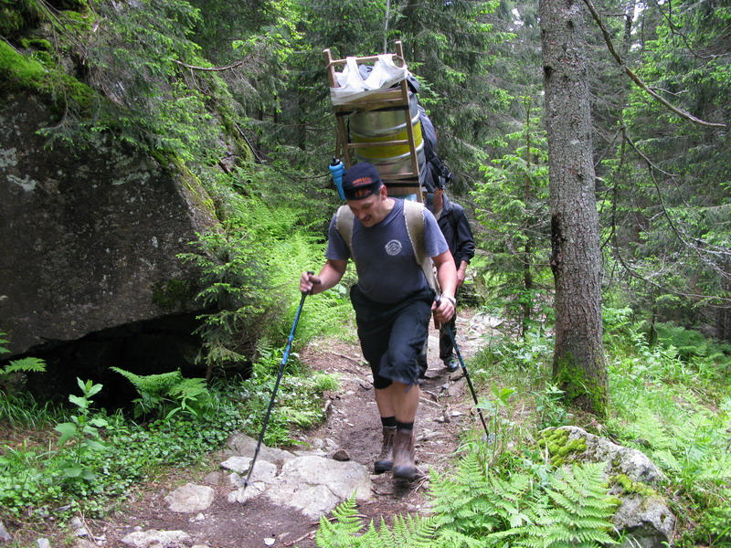 Tí najnepokojnejší si na Hrebienku nabalia krošnu, aby počty ľahké boli, tak rovných 100 kg a spolu s ostatným doprovodom sa prejdú na Zamkovského chatu. Tam už guláš, pivo a Sherpa Band čakať zvykne. Na dievčatá s veľkým batohom čaká 2x25 kíl a chlapci čo sa majú viac radi si dva krát 50 kg vyniesť môžu...