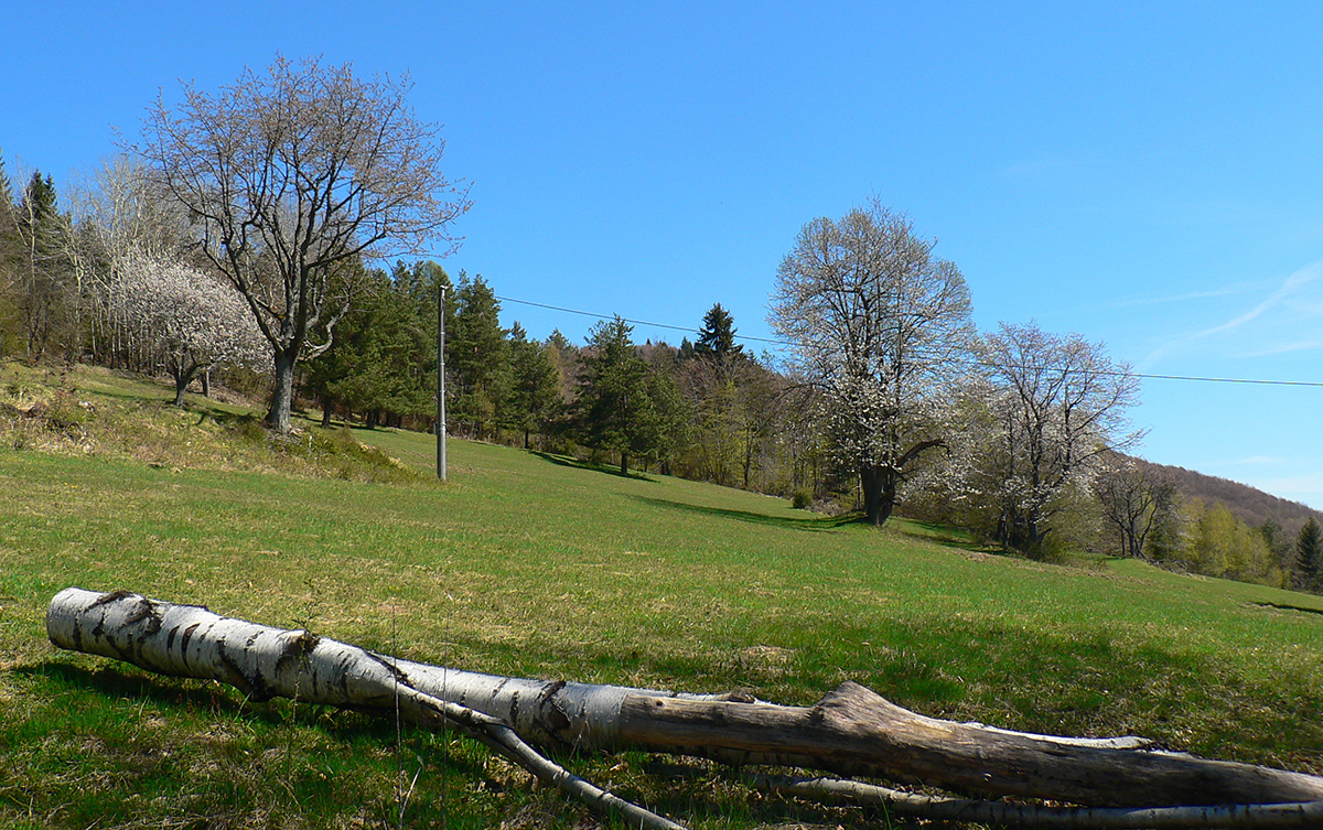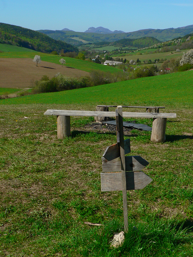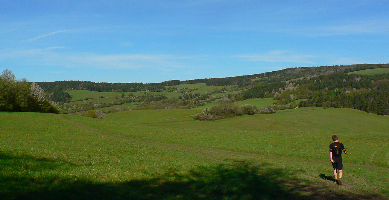 Do kopca na Holíš hovory tíchnu, ale po príjemnom chodníku sa fajne krepčí a sem – tam aj výhľady, z Holíša aj panoramatické „widoki zajebiste“. Ukazuje sa ažúro deň, slnko stúpa, nálada tiež (zatiaľ), sily stačia (ešte), achilovka drží, no radosť žiť, nie? Potom krásne lúky, lesa kus a ďalšie, ešte krajšie lúky. Z diaľky spoza horizontu vytŕčajú na jednej strane Vršatecké bradlá, na druhej Rozsutce. A tak si tu pobehujeme.