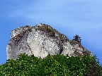 Ochutnávkou je skalný hríbik - smrčok, ktorý má samostatnú tabuľu. No potom sa odpojím od červenej a po žltej kluskám okrajom lúk v ústrety vpredu sa vynárajúcemu skalnému mestu a Roháču nad ním.
