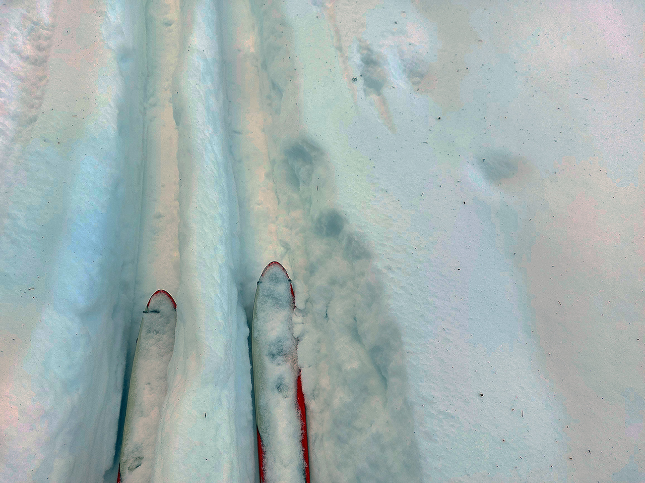 Potom už nazad skoro tak, ako sme prišli, len sme cestou ešte vyskúšali tú Paškovú – čiže z lúk pod Vtáčnikom zlyžovať do jamy záveru Trlenskej doliny. Ale tam už prášku minimum, skôr rodiaca sa kôrka. Nič moc. Tam ráno svietilo, no...