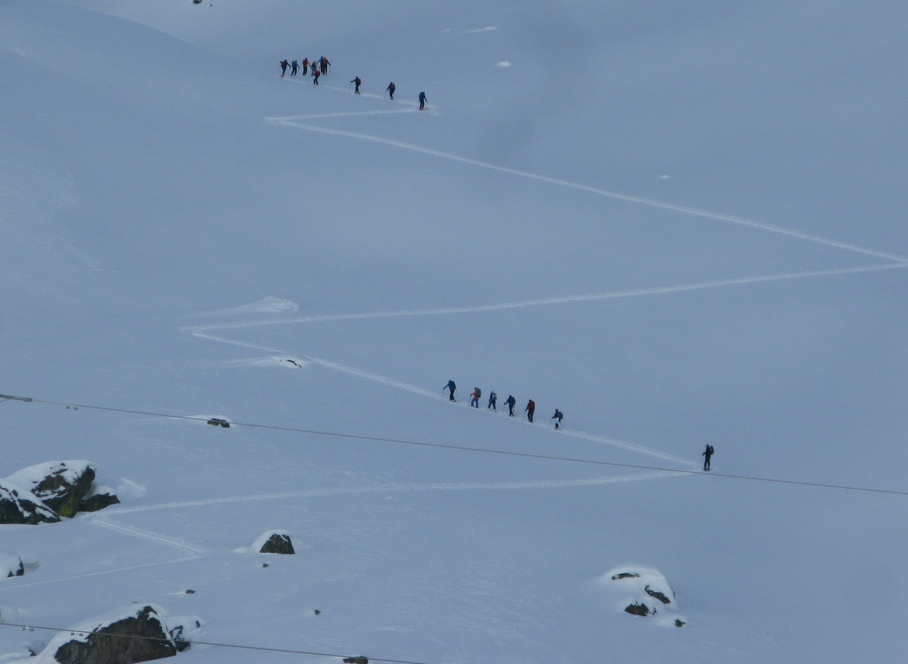 Na tretí pokus o tento kopec sa za dobrých podmienok zastavujem až na vrchole. Záver už idem peši. Z vrcholu sú nádherné výhľady na všetky strany. Po návrate k lyžiam nasleduje tisíc výškových metrov krásneho zjazdu v prašane.
