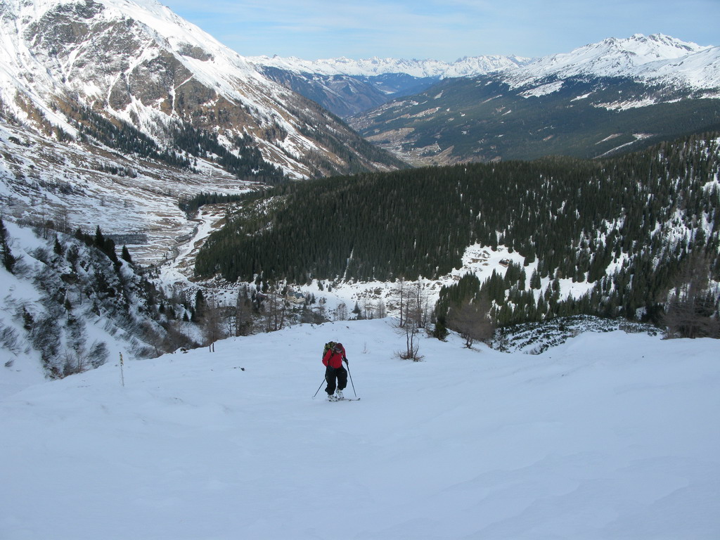 Tete Mýtnej sme o druhej poobede zamávali jedným sezónnym lístkom a tak sme ju dajako ukecali a pustila nás. V Sportgasteine cca 1600m. je snehu málo a tak sme si prevetrali pľúca na zjazdovke. O tomto čase tu už moc lyžiarov nebolo...