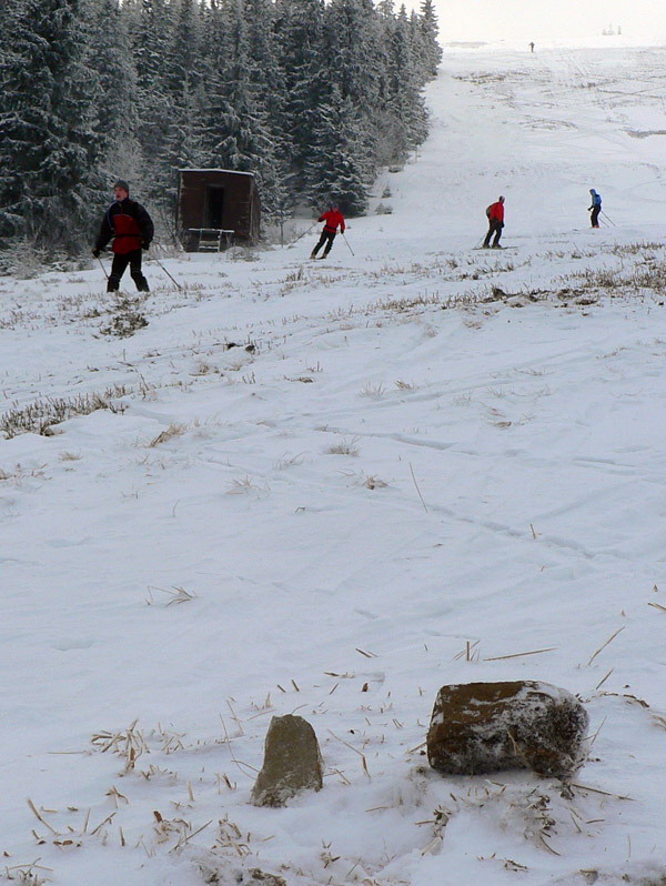 Aspoň sa ukáže, kto „nie je otrokom svojich lyží“ a nebude ich šanovať. Pravidlá sú jednoduché: štart až dolu, obrátka až hore, cieľ až pri bare :-) A až o 15:00, čo je od deviatej od rána dosť výživné – veď maratón. Kontroly žiadne, všetko na čestné slovo. Najlepší to dali 6 až 7 krát. Cieľová rovinka - serpentínka nad chatou bola tiež riadne iskrivá, čerstvý poprašok všetko pekne zakryl, až kým tade niekto na lyžiach neprešiel, no fuj. Zamračené a trochu vetríka spoza kopca asi väčšine vyhovovalo, lebo keď sa ukázalo slnko, niektorí si sťažovali, že sa začínajú prehrievať. Nakoniec sa všetkých asi 32 maratóncov (z toho 7 „tých krajších“) našlo v tom bare, niektorí sa dokonca pridali k pretekom až po štarte, tak sa im to zapáčilo. Zjazdárov bolo na svahu máličko, a keby aj nie, je dosť široký, aj šľapiek by sa oveľa viac zmestilo. Parádna akcia to bola, ideálna do snehovej mizérie. A ak nebude budúci rok taká utajená, isto viac ľudí príde. Len či sa pomestia v tom bare?