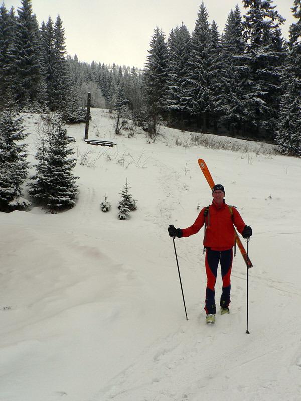 Sobota 22. januára 2011, hádam je konečne po dvojtýždňovom odmäku, ktorý zlízal všetko čo sa dalo aj z toho mála čo ostalo po odmäku vianočnom :-( Skialpové preteky v tejto mizérii? Jedine po zjazdovke na „umeláku“. Teplota síce klesla k -8 stupňom, ale snehu nikde. Tých pár milimetrov prašanu len kryje skaly a ľad na zjazdovke. Ski park akurát dnes po nútenej pauze zahajuje prevádzku v dolnej časti, lenže v hornej nie je zasnežovanie a podľa toho to tam aj vyzerá. Šutre, čučoriedky, pníky trčia zo zvyškov firnu, niektoré ani netrčia a o to je to horšie. V poslednom strmom úseku aj ľadom podstlaté, niektorí si na ňom aj ustlali.