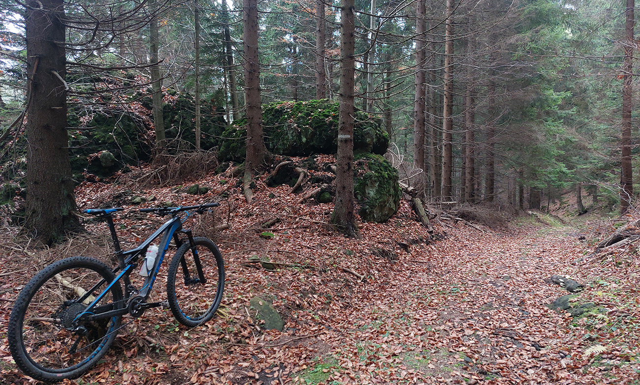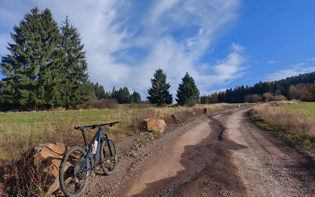 Až do konca to potom boli už len pevné cesty s dominanciou asfaltov, ale kadejakej hrboľatej kvality. Niekde až „bianche“, aký je tam asfalt od staroby vyblednutý. Takže bacha, aspoň gravel je tam treba. Ale ozajstné, pod kolesami praskajúce strade bianche sa aj tu našli. V podstate modrá a potom červená cyklotrasa až do Štubne, so skúpymi výhľadmi cez rúbaniská doľava – najskôr na vodárenskú nádrž, potom na kotlinu okolo Skleného a štubnianskej železničnej stanice. Taká pohodová cykloturistika.