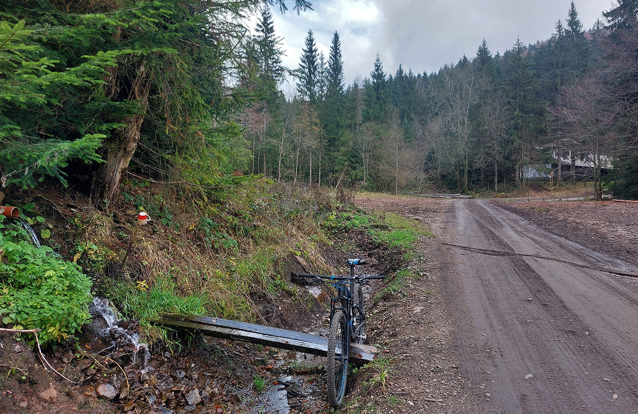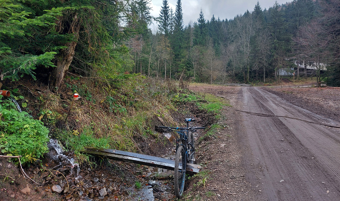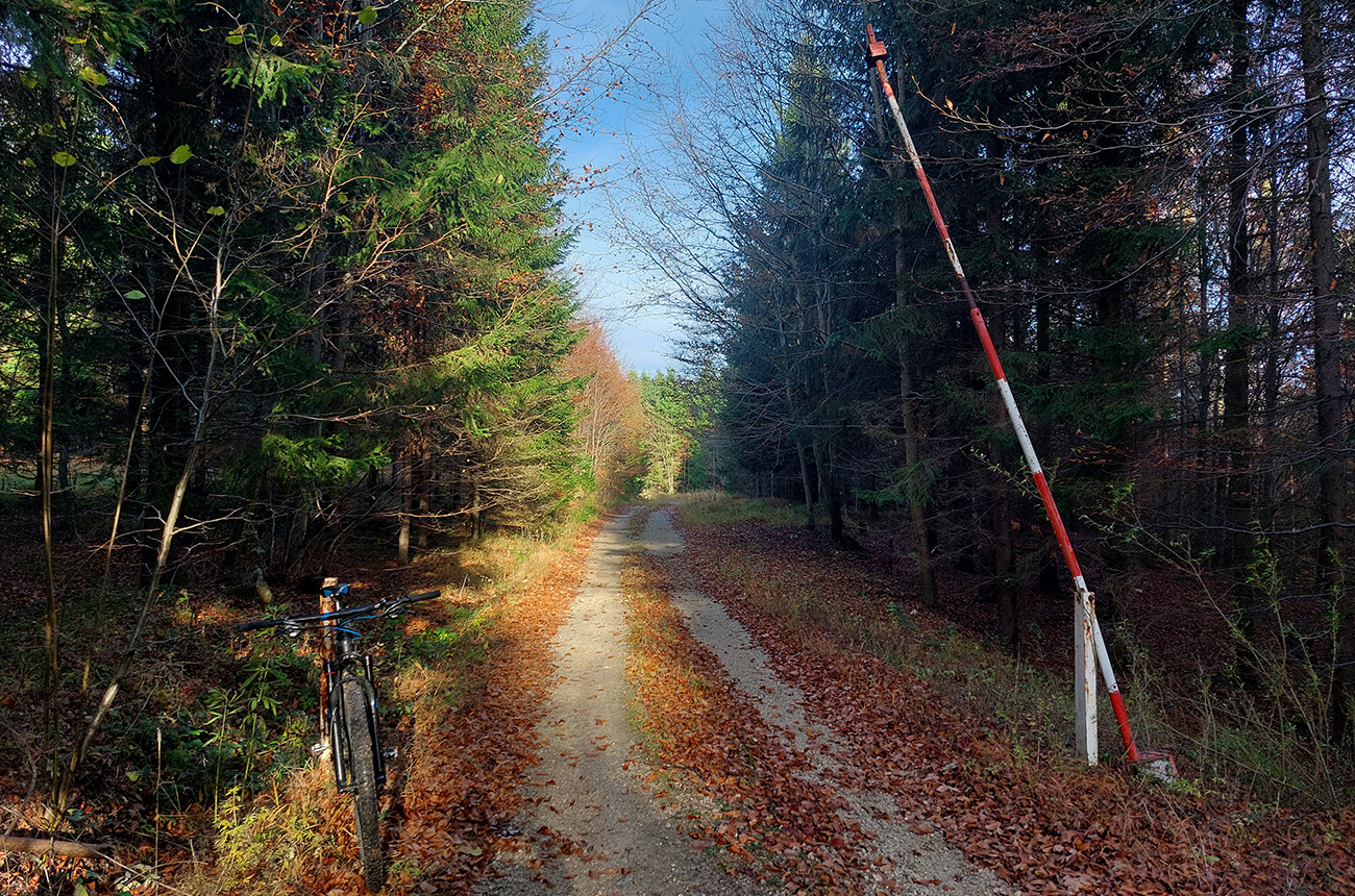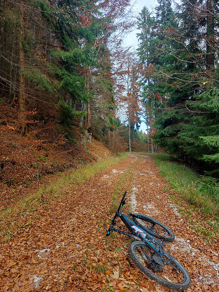 Hneď po vjazde do lesa prvá strada bianca, až po napojenie na asfaltku hore Dolinou Čiernej vody. Pohodofka v miernych sklonoch, blata skoro nič, a ešte občas aj slnko začarovalo farbami. Pomaly som sa posúval na východ za prašťania šotoliny a občasného šuchotu lístia.
