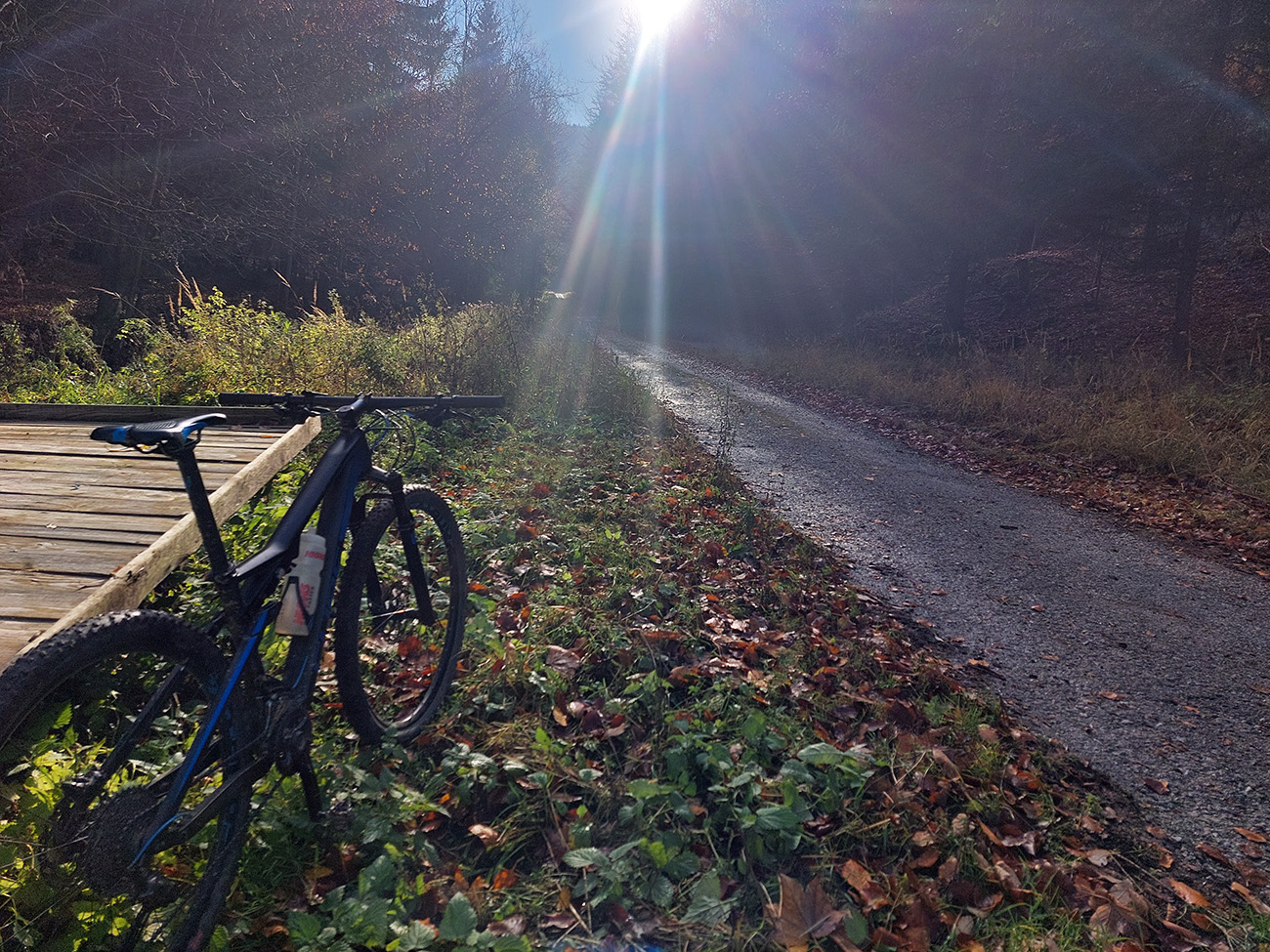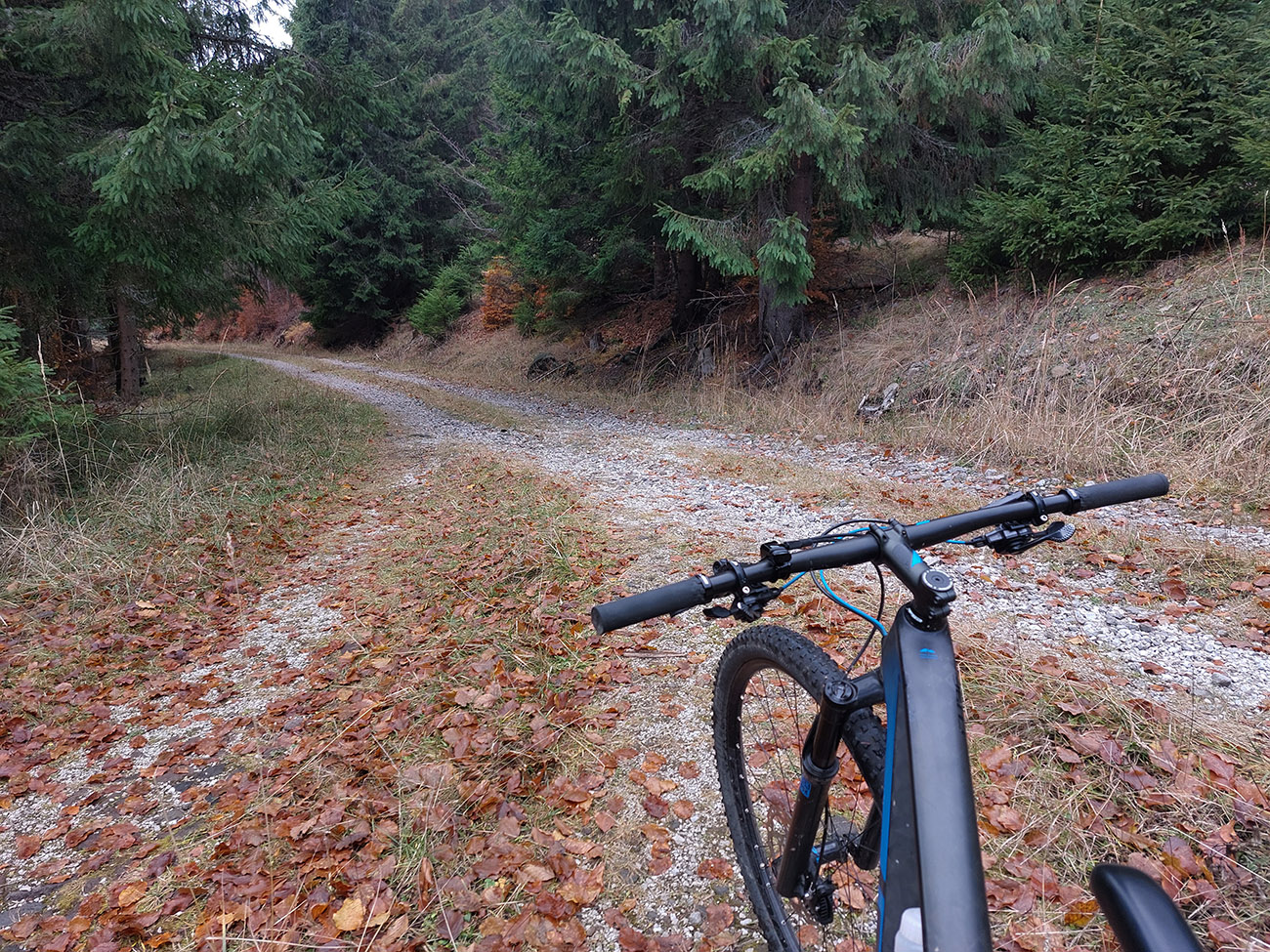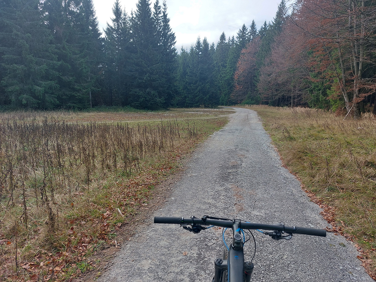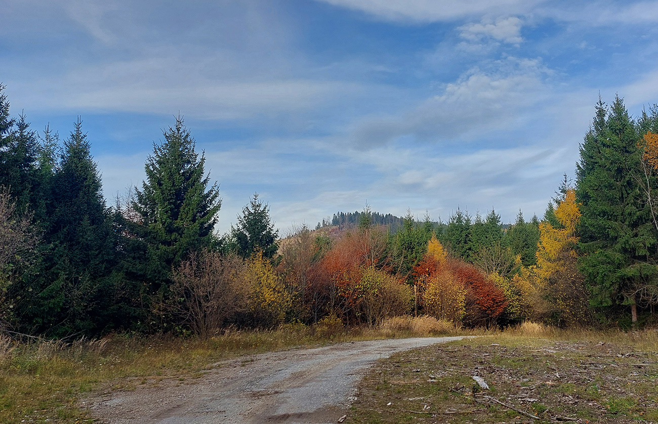 Hneď po vjazde do lesa prvá strada bianca, až po napojenie na asfaltku hore Dolinou Čiernej vody. Pohodofka v miernych sklonoch, blata skoro nič, a ešte občas aj slnko začarovalo farbami. Pomaly som sa posúval na východ za prašťania šotoliny a občasného šuchotu lístia.
