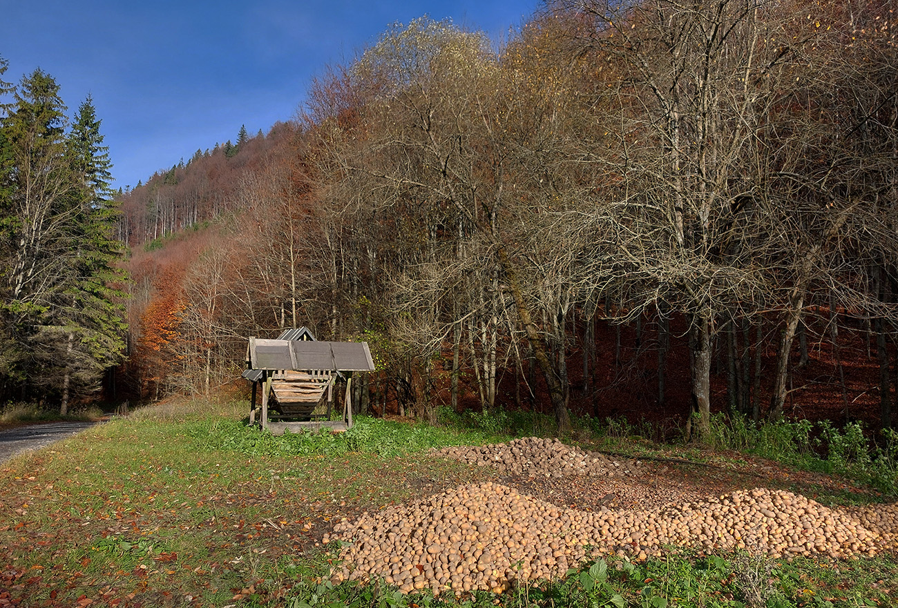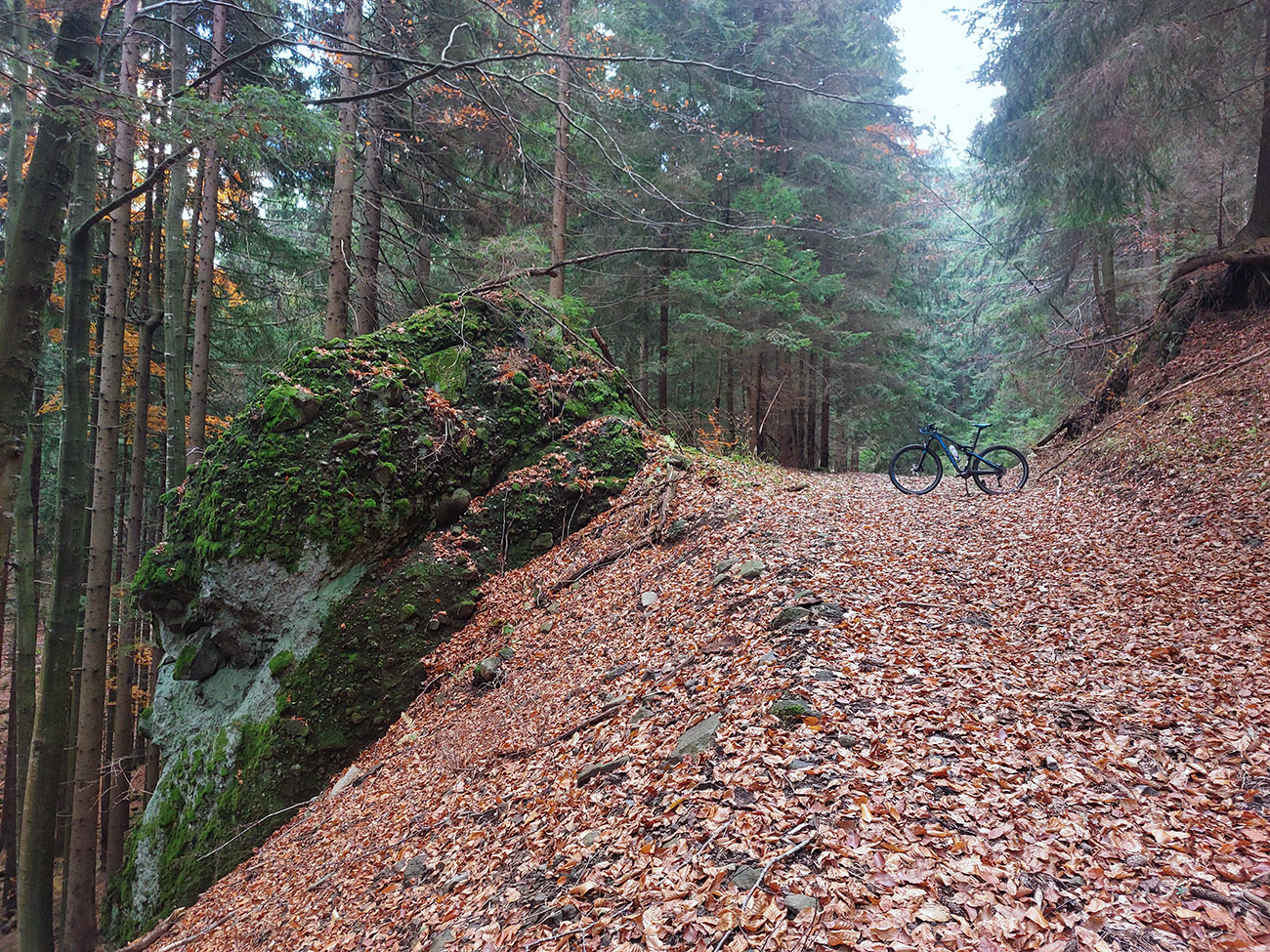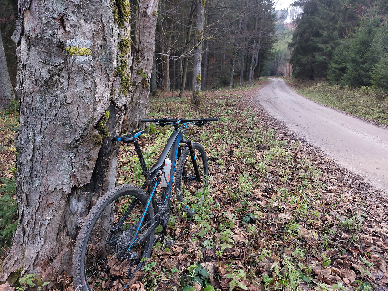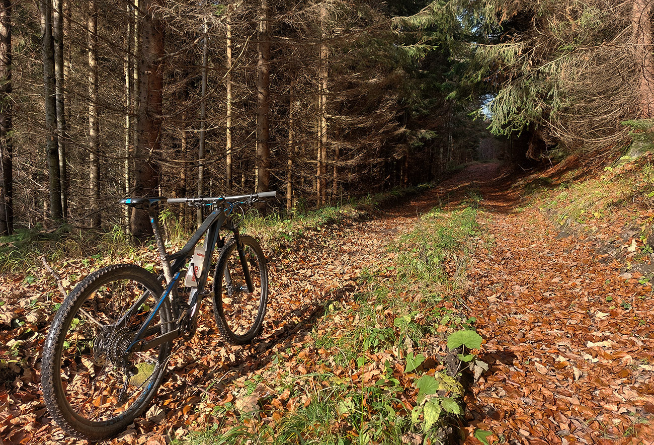 Hneď po vjazde do lesa prvá strada bianca, až po napojenie na asfaltku hore Dolinou Čiernej vody. Pohodofka v miernych sklonoch, blata skoro nič, a ešte občas aj slnko začarovalo farbami. Pomaly som sa posúval na východ za prašťania šotoliny a občasného šuchotu lístia.