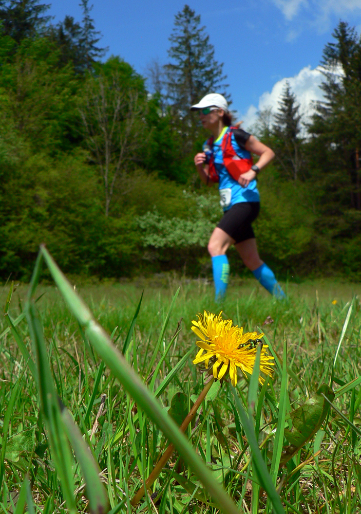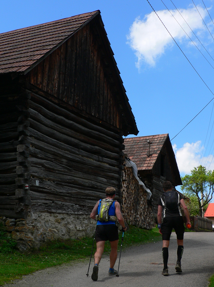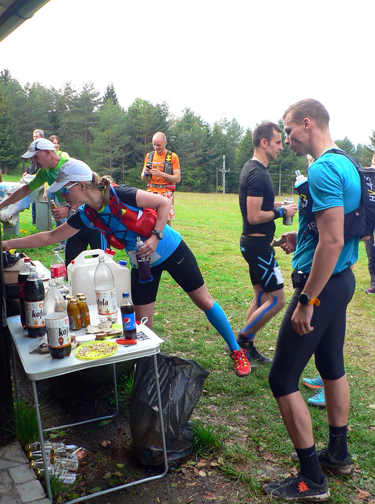 Kto sa úspešne skotúľal na K1 do jamy za Petrovou Lehotou, prebrodil sa cez rúbanisko (ktoré lesáci po ťažbe nie sú schopní už pár rokov upratať aspoň v trase chodníka), už si užíval široké cesty smerom k chate Baske. Tam boli v ponuke o.i. aj tradičné žlté „socialistické“ malinovky a odtiaľ až po Homôľku aj výhľady z najkrajšieho úseku trasy, bežiac po mäkkom koberci rozľahlých lúk.
