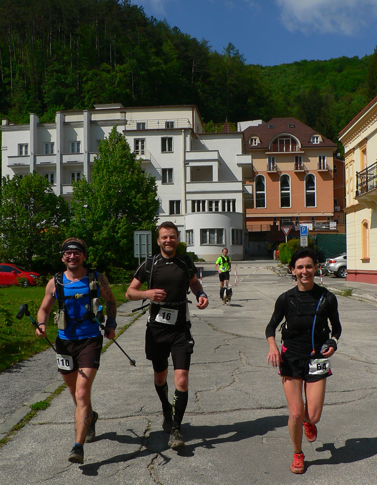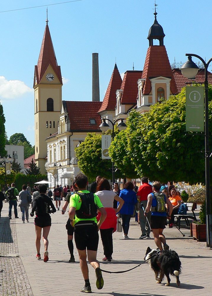 Cieľové serpentíny a preplnená pešia zóna, to už bol ten skutočný cieľový bonus. Nasolení a zablatení bežci pekne kontrastovali s vyvoňanými a vymódenými kúpeľnými hosťami. Neskoršie dobiehajúcim sa dostalo väčšieho potlesku aj cieľových fanfár ako prvým, lebo na námestí akurát zúrila dychovka. Ale voda v hadici bola fajná, cieľový trávnik mäkký, guľáš čerstvý a čapované fajné, ani sa nechcelo domov.