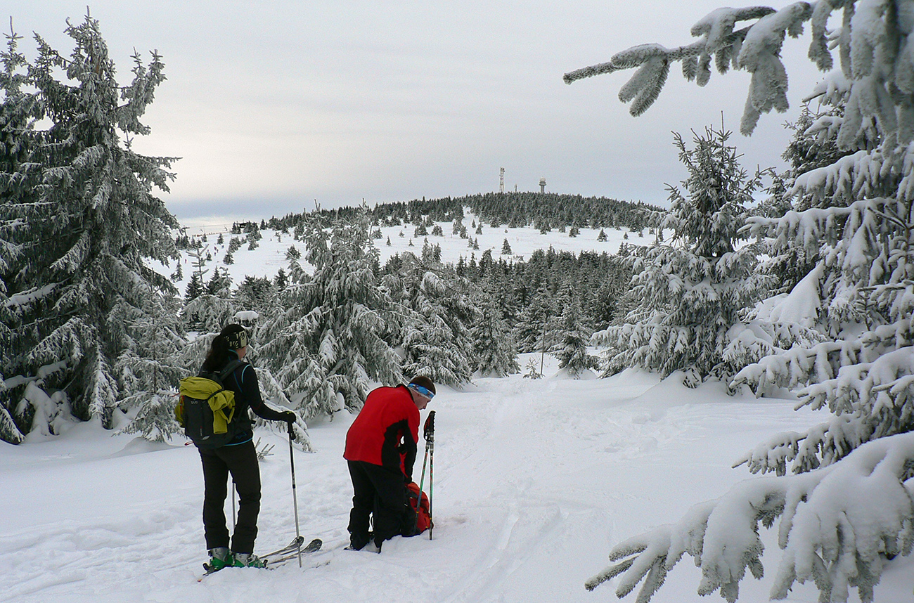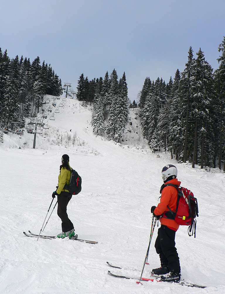 Hore len jeden rozdiel, lebo Babia hora vyliezla z mrakov už celá. Cestu nazad si ešte spestrujeme cez Minčol a rovno k hornej stanici vleku. Z predošlých dní niektorým z nás ešte horia stehná, tak rozrytý prašan zavrhujeme a zbabelo zliezame k parkovisku direkt po zjazdovkách. A to je vlastne všetko – krátke, pohodové, akurát na dobrú rozlúčku so sviatkami to bolo. Stav snehu je vidieť na fotkách. Ďakujem za sprievodcovské služby, odvoz a spoločnosť :-)