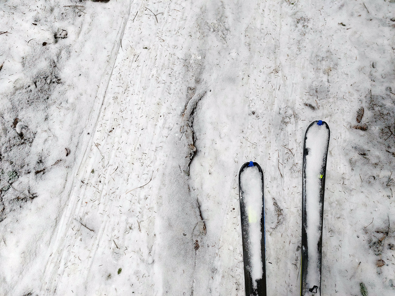 Potom už len odjazd nazad pod Vtáčnik. Zvážnica je pod dostatkom snehu, aj vyjazdená, takže zákerné šutríky vidíme. Záver už na pásoch, aj dole po cyklotrase a popri Mederlyčke na zjazdovku. Tam ku koncu v hustom lese samozrejme snehu najmenej, aj je zabordelovaný, ale aspoň sa na tom starom ľade nešmýka.