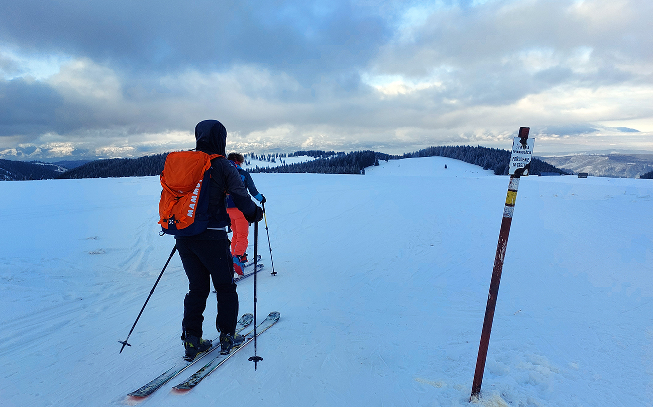 Dalo by sa pokračovať v oblúkovaní až na dno Ždiarskej doliny k tomu smerovníku, ale že radšej nalepíme a prepásujeme sa k tej svetoznámej „búde nárekov“. Lyžovačka pre spestrenie vraj cestou nazad, možno...