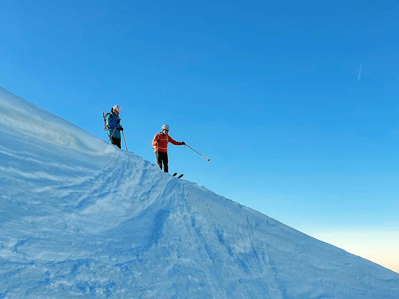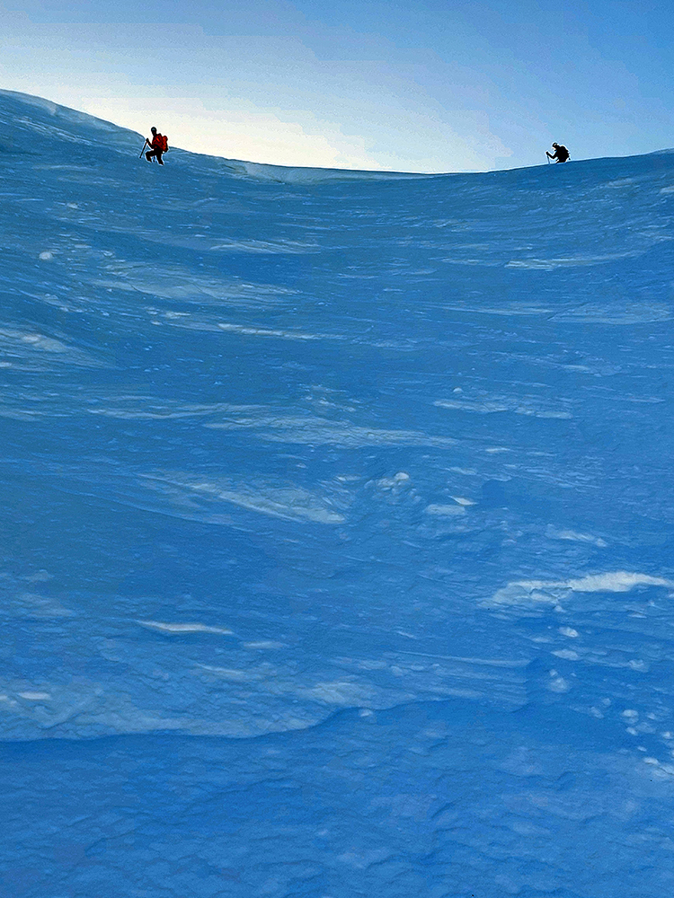 Ozaj dobré podmienky – tvrdý, državý sneh, bez ľadových platní, aj keď už tade hafo ľudí prešlo. V strede viac vyšmýkaný podklad, po okrajoch viac čerstvého a dole nazosúvaná múka z vyšších polôh. V nej sa najlepšie točili oblúky.